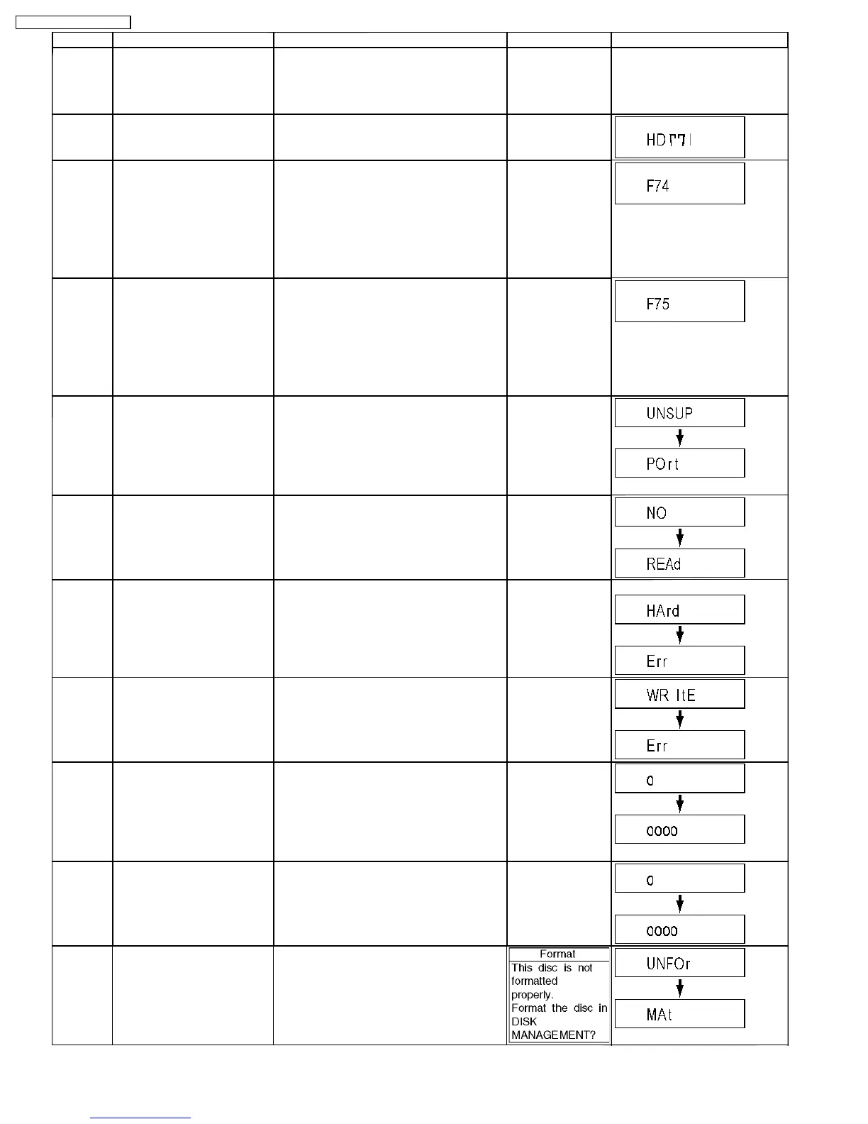 Drive error The drive detected a hard error. “DVD drive error.” Display for 5 seconds.