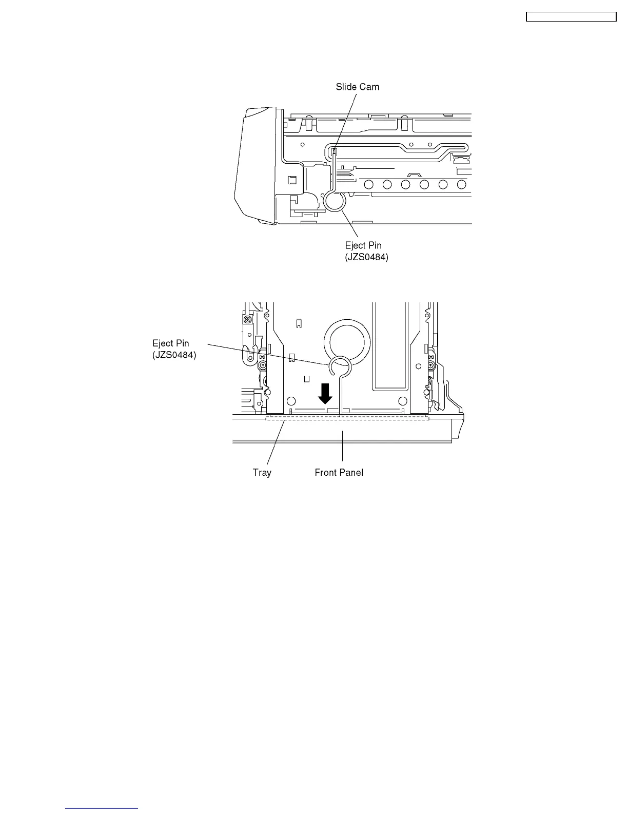 3. Push in SLIDE CAM by Eject Pin(JSJ0484) or minus screw driver (small) to eject tray slightly.