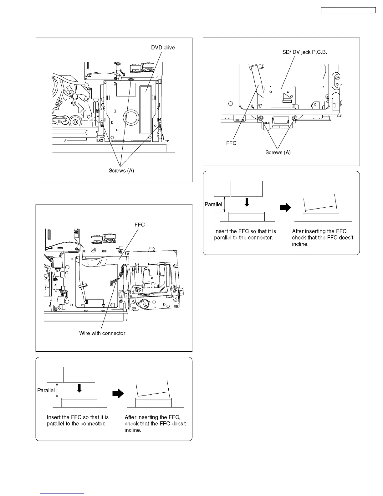 1. Remove 2 Screws (A) to remove SD/DV jack P.C.B..