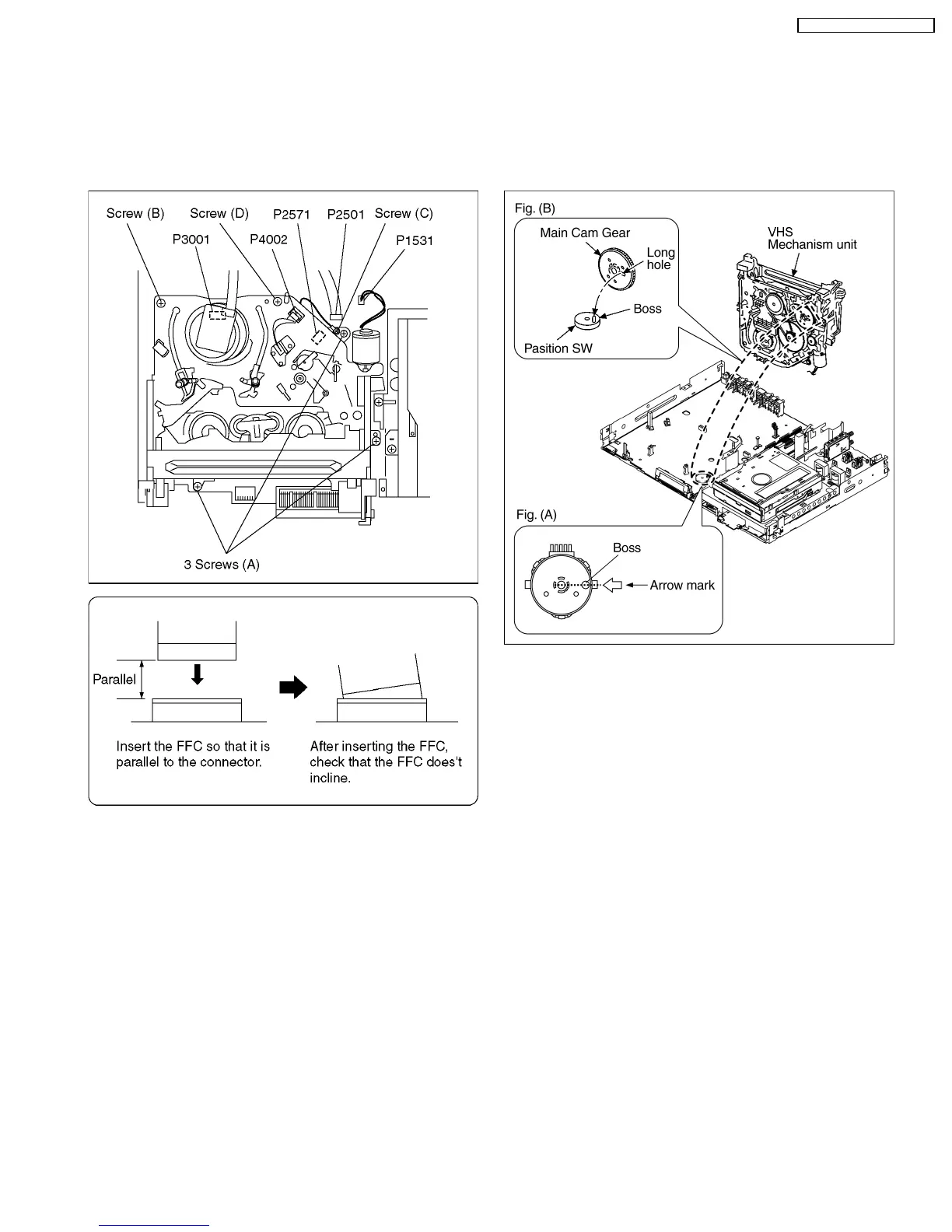 2. Attach VHS Mechanism Unit so that Boss of Position SW is