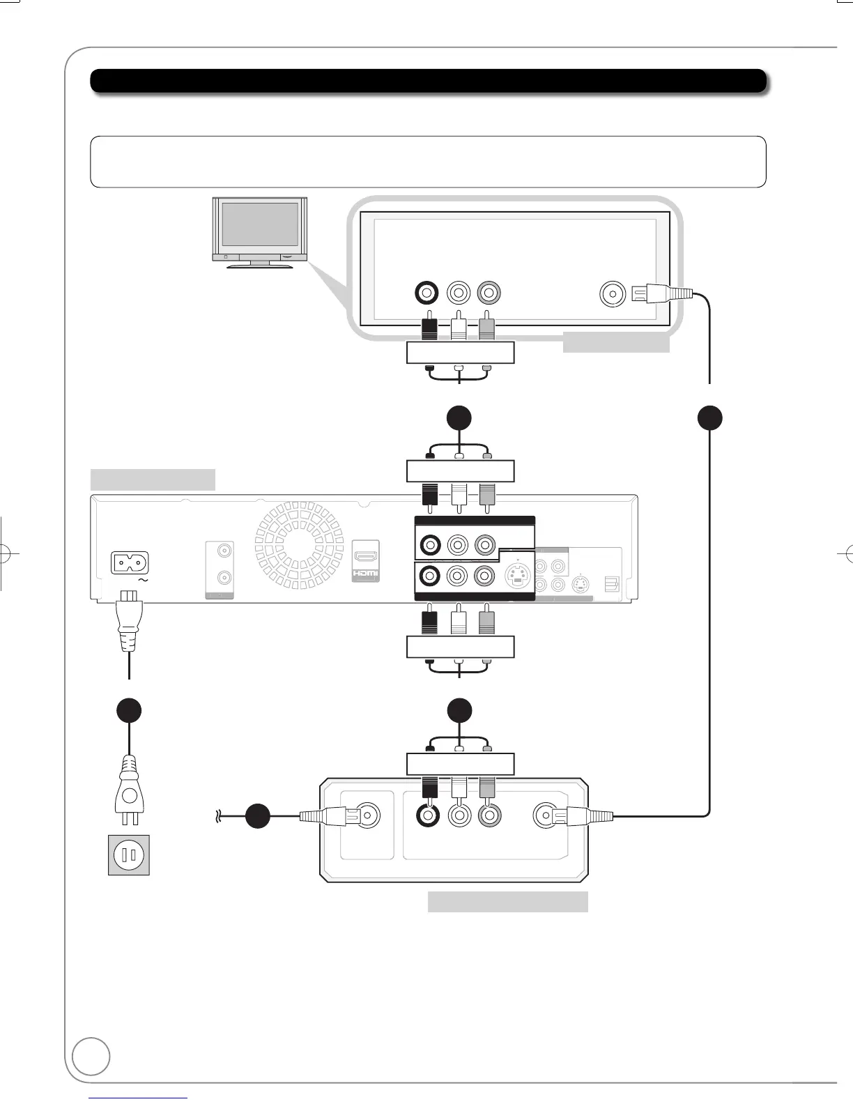 Audio/video cable (included) from the “DVD/VHS COMMON OUT” on the unit to the “AV