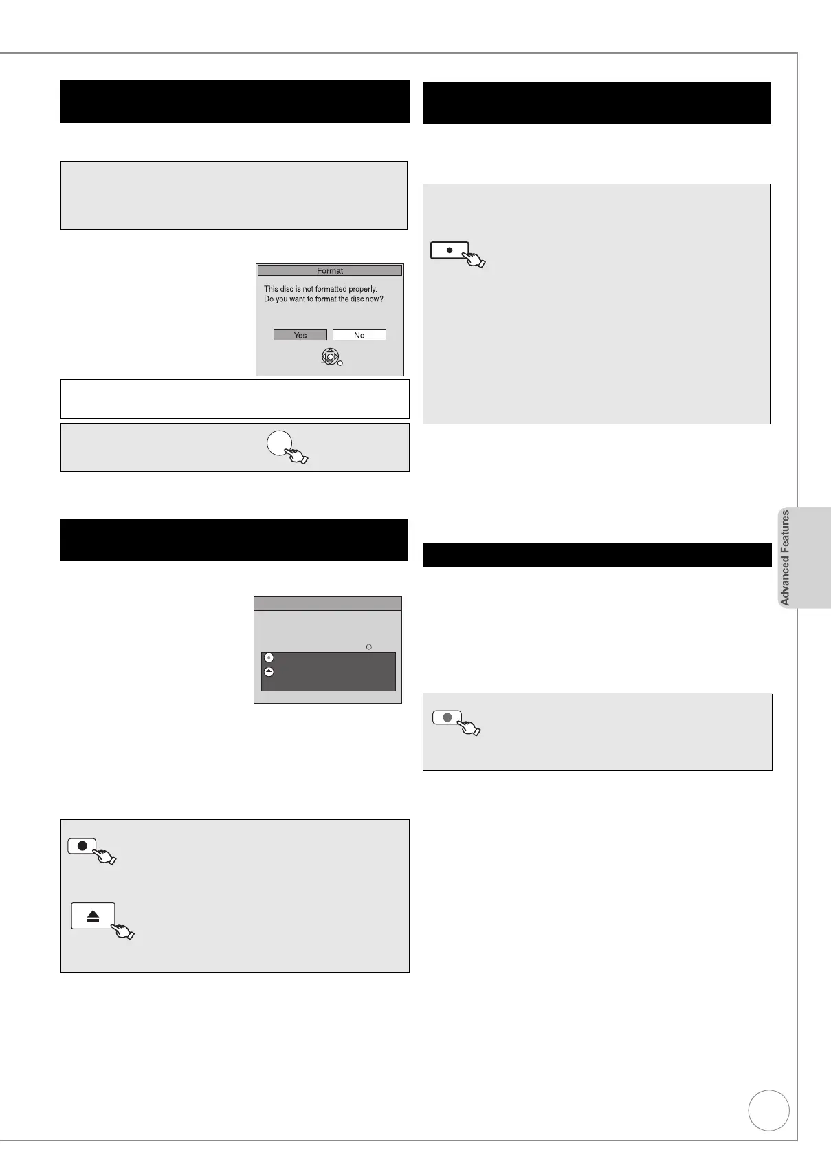 Refer to “Formatting Discs” (> 64) for more detail of formatting.