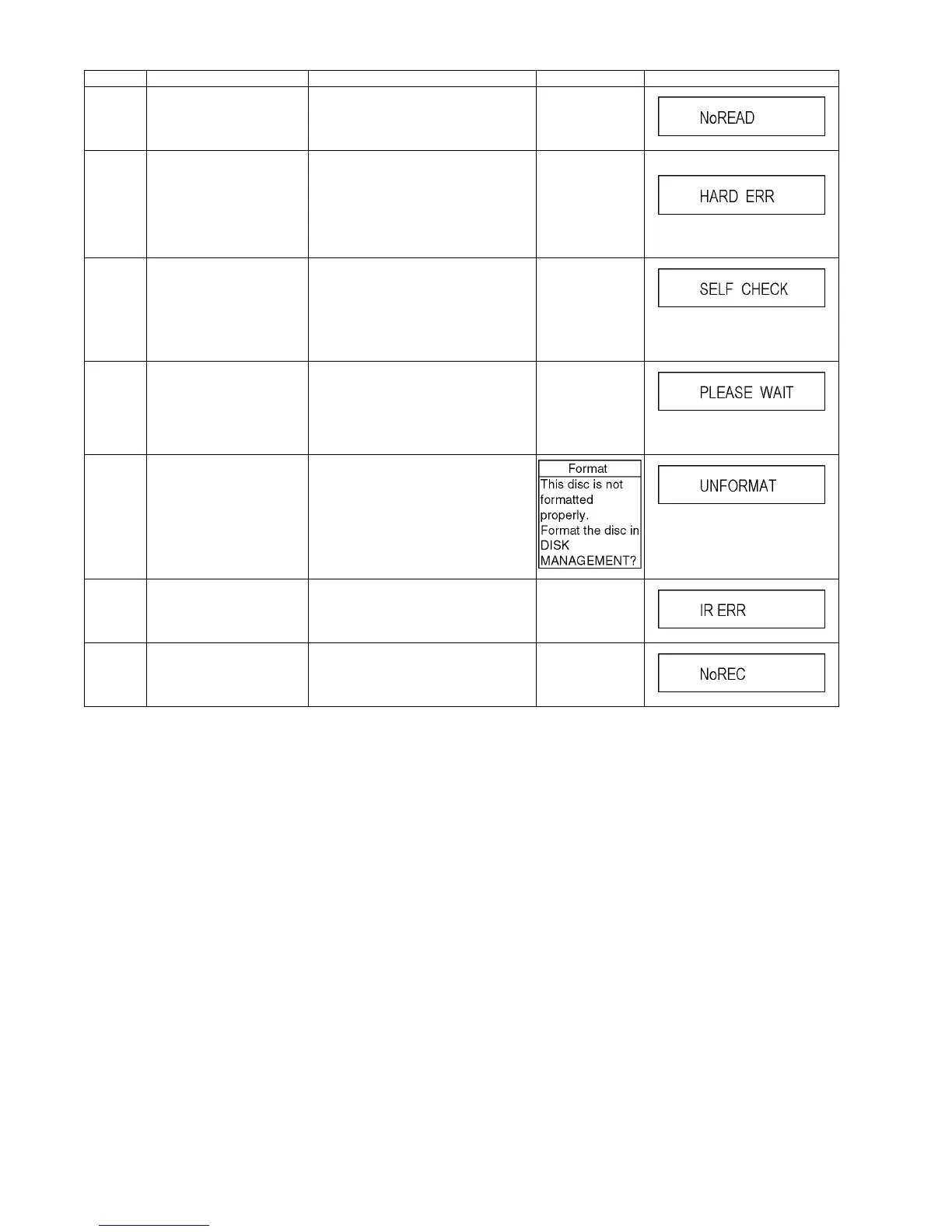Drive error The drive detected a hard error. “DVD drive error.” Display for 5 seconds.