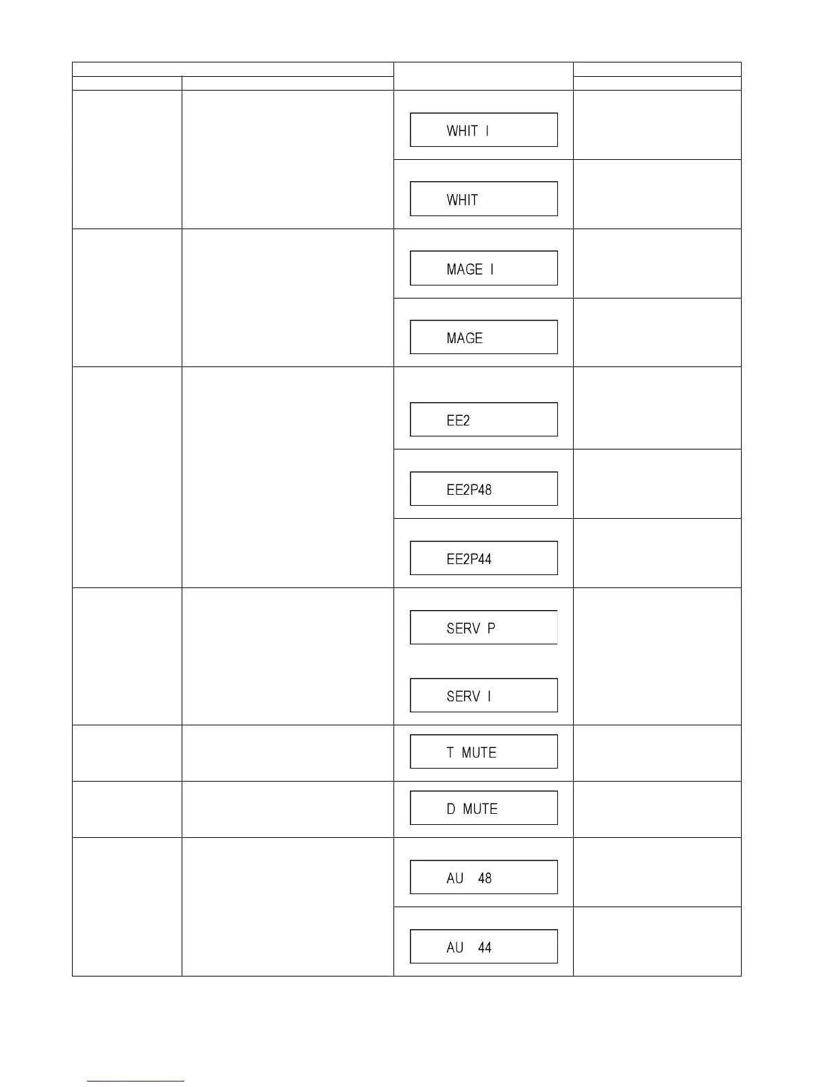 Initial mode (Audio 48kHz) Press [2] [3] in service mode.