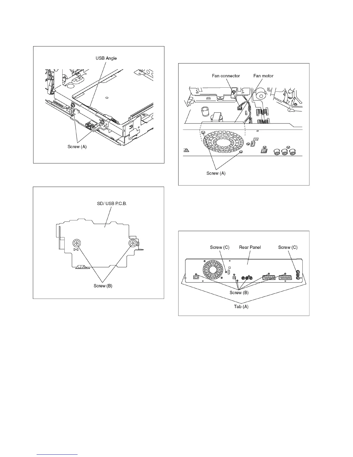 Remove 2 Screws (B) to remove SD/ USB P.C.B.