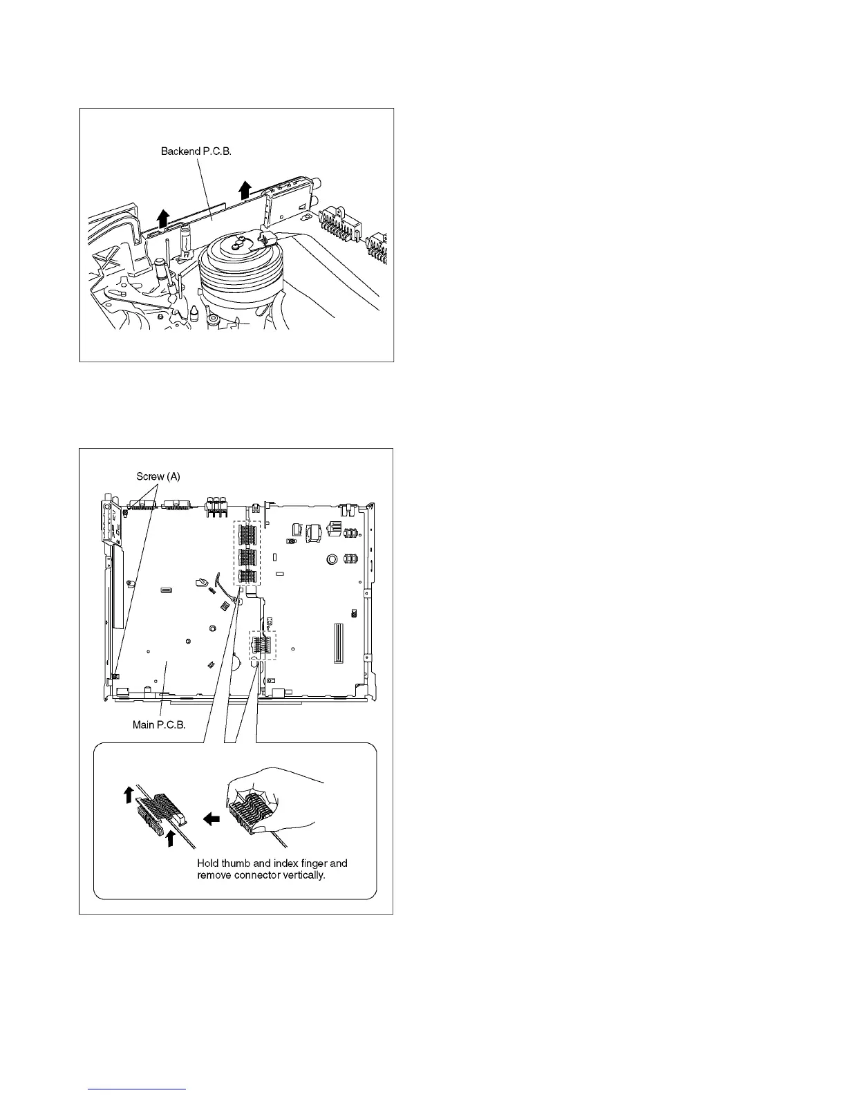 1. Pull out the Backend P.C.B. in the direction of arrows.