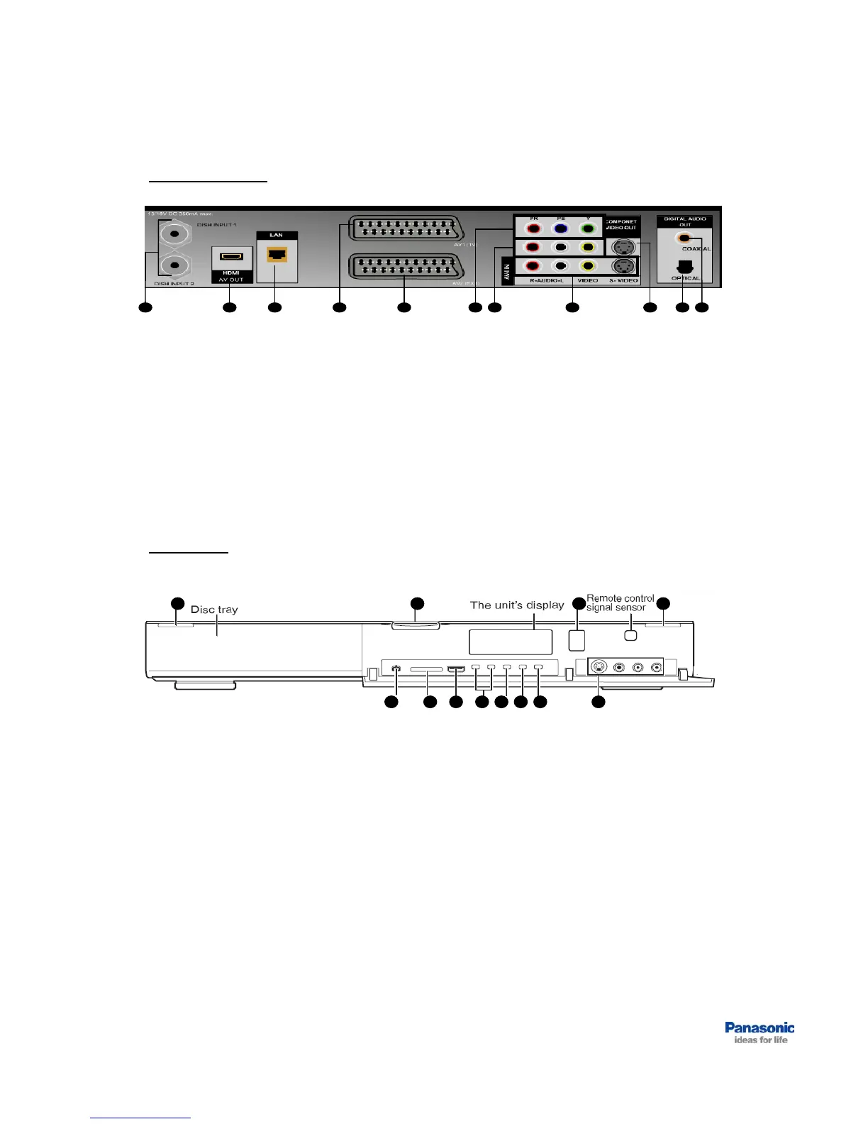 10. OPTICAL digital audio output4. AV1 (TV) SCART input/output terminal
