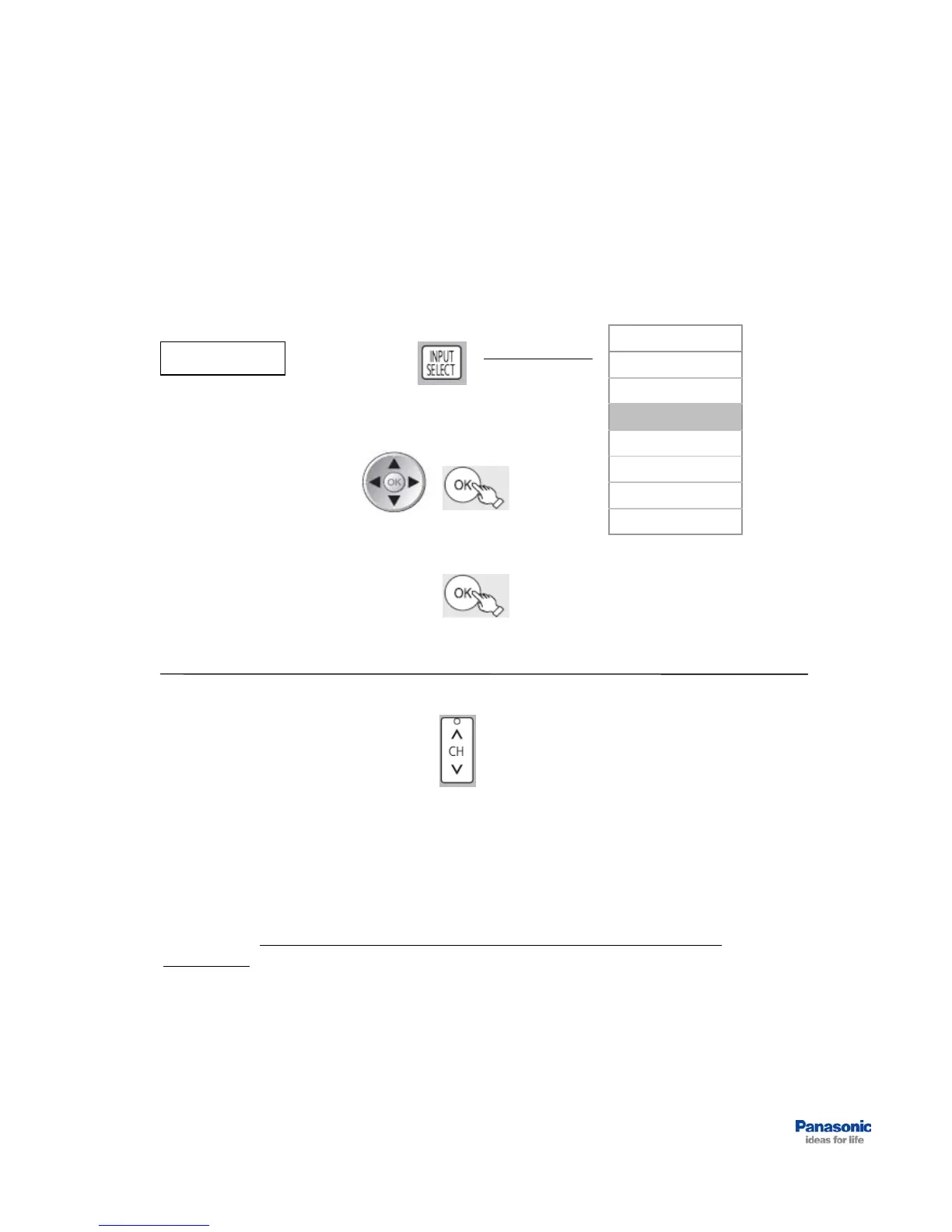 The input select button is used to toggle between inputs (AV1 AV2, AV3, DV)