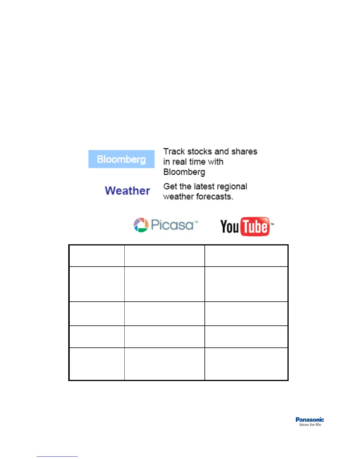 For information on using Viera Cast, please refer to the Viera Cast Self-Help