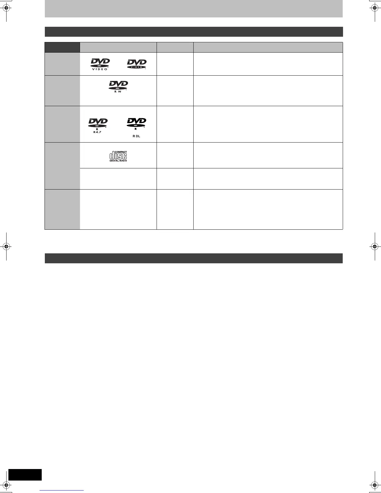 ≥DVD-R, DVD-R DL, DVD-RW, +R, +R DL recorded on another unit and not finalised (> 114).