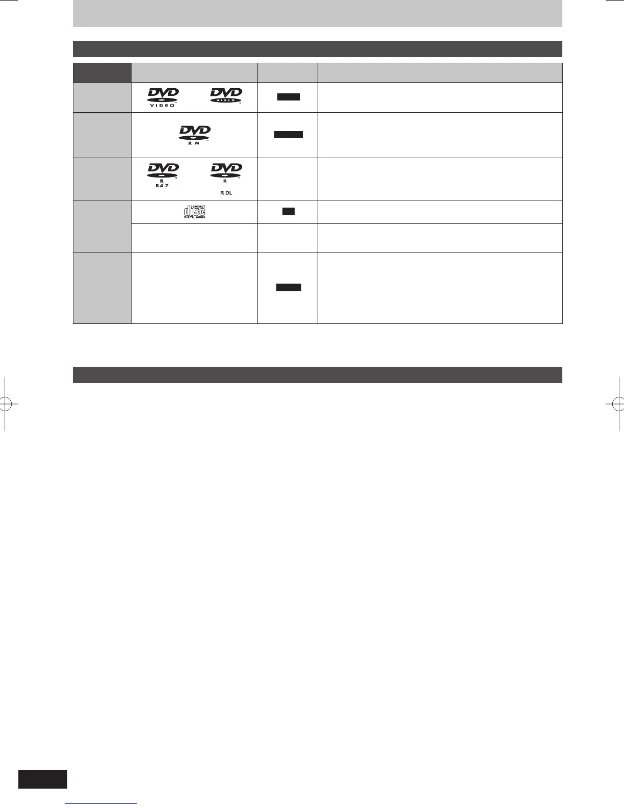 DVD-R, DVD-R DL, DVD-RW, +R, +R DL recorded on another unit and not fi nalised (➡ 114).