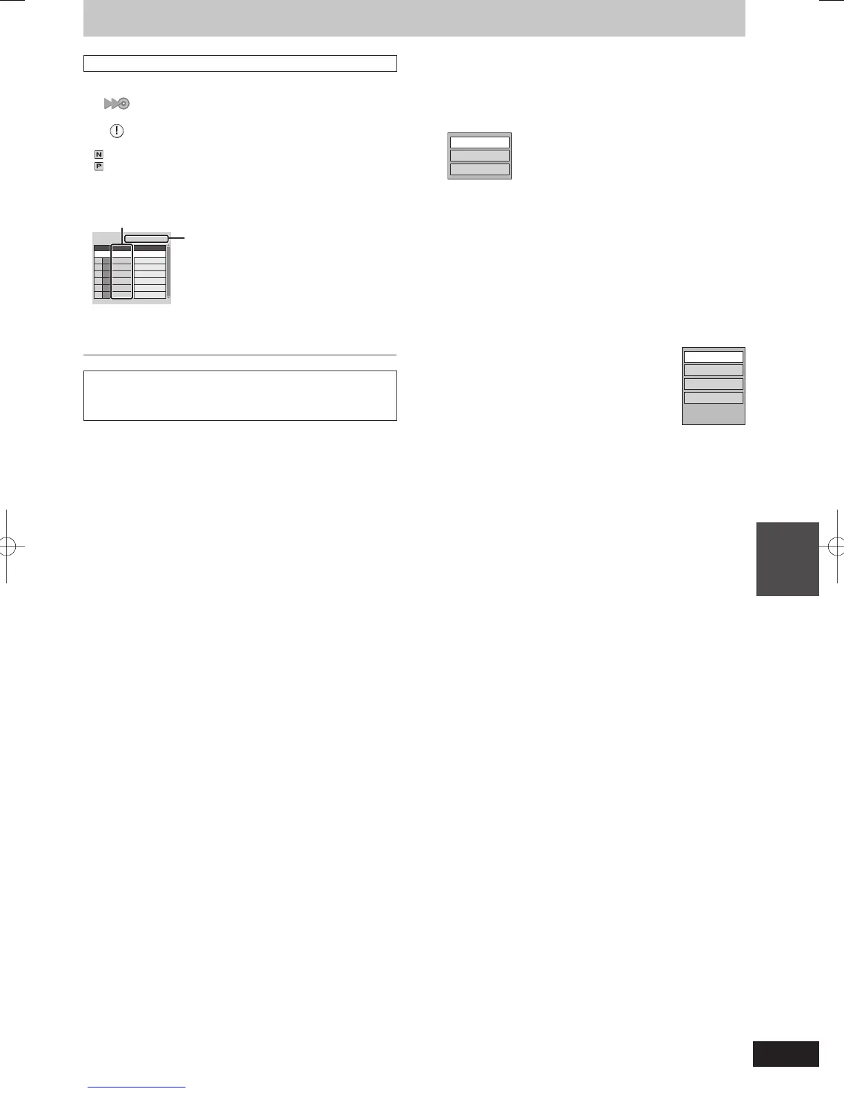 display titles by No., Date, Day, Channel, Start time and Title name.