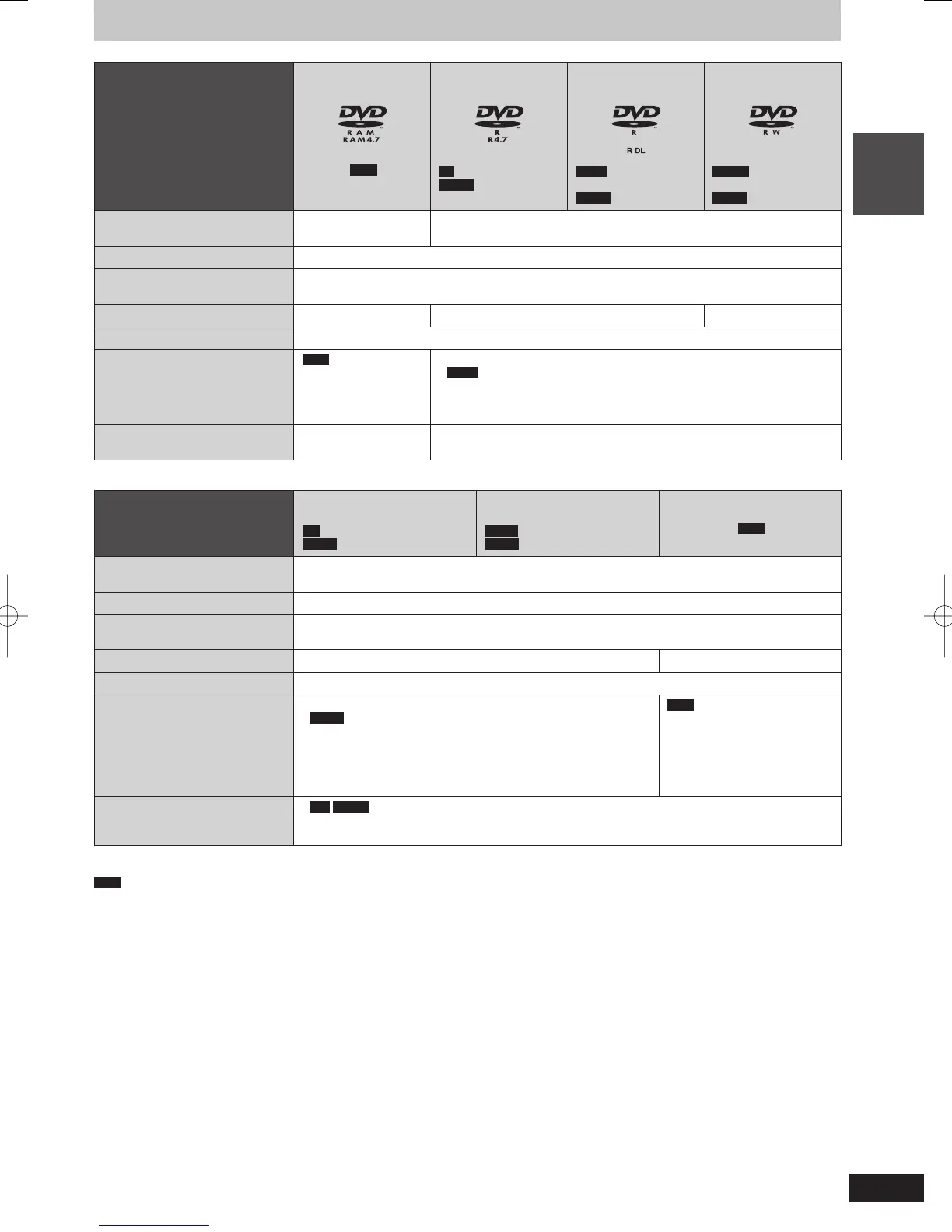 Note y +R +R DL recorded with this unit or with another Panasonic DVD Recorder may be incompatible.