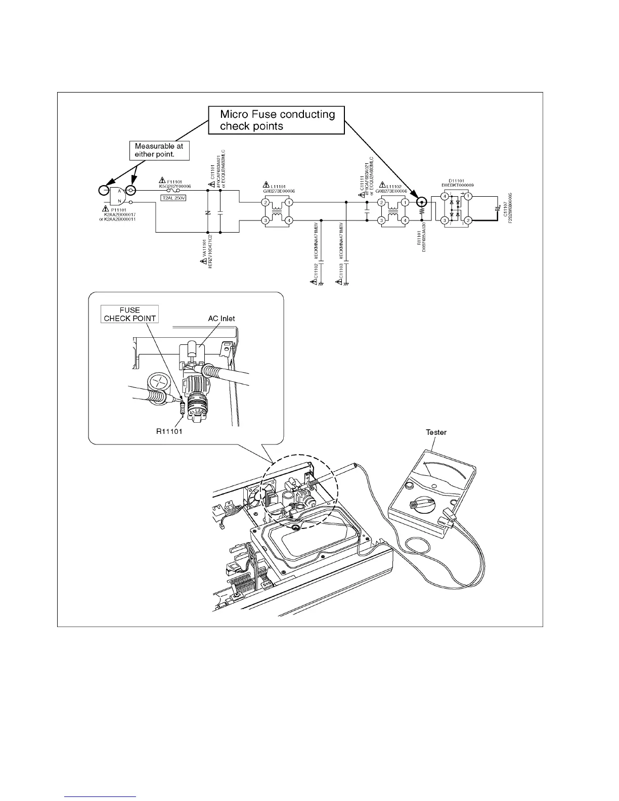 Check the Micro Fuse conducting using the Tester at the check points below.