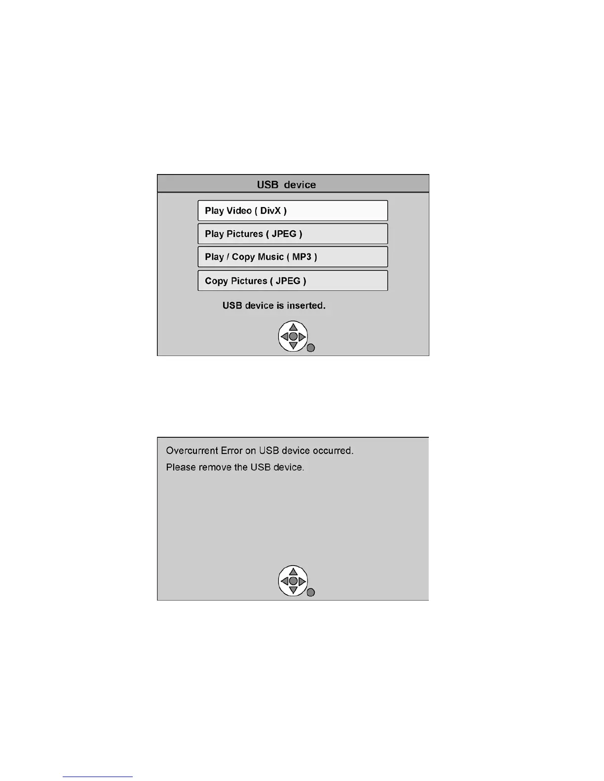 Warning is displayed automatically if overcurrent is detected when a USB device is connected.