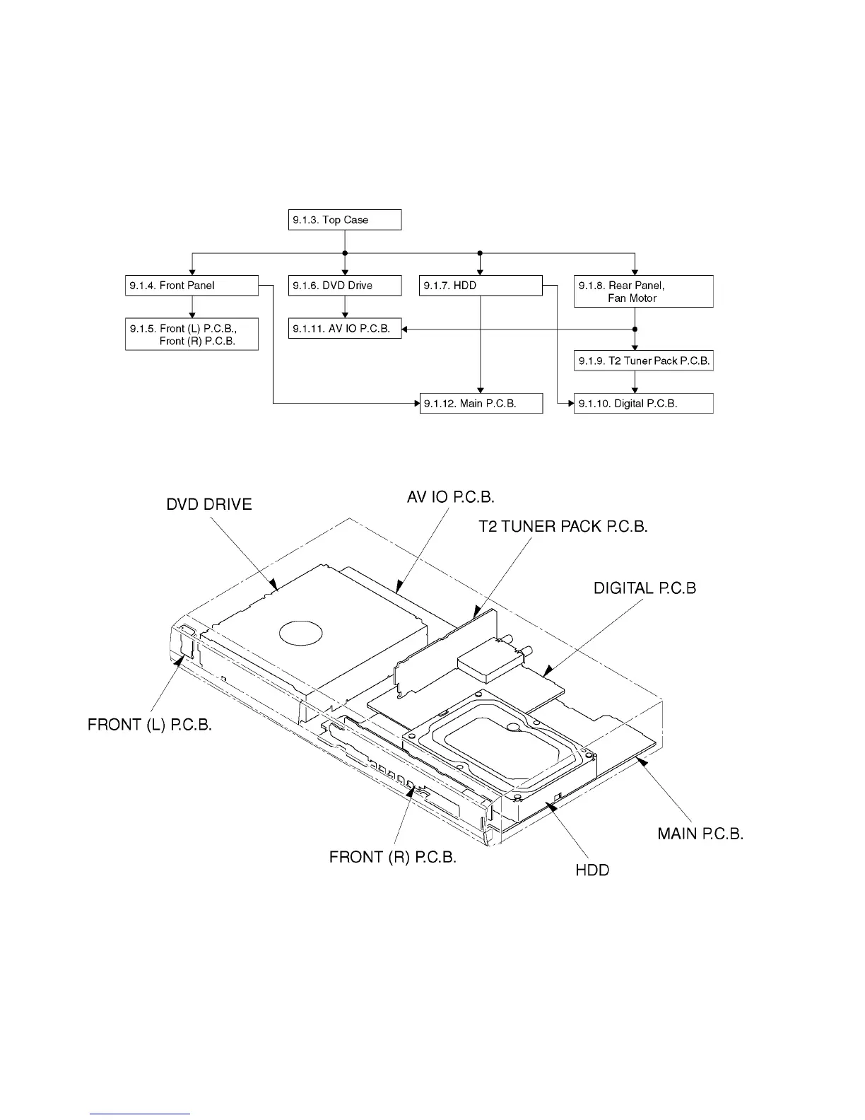 The following chart is the procedure for disassembling the casing and inside parts for internal inspection when carrying out the ser-