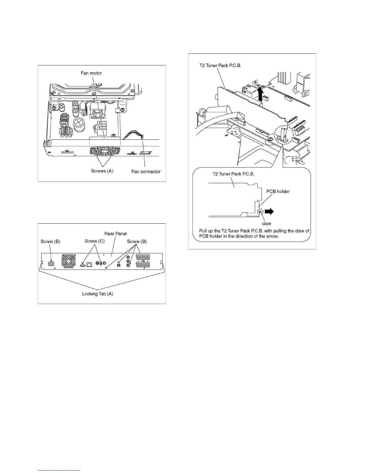 1. Pull out the T2 Tuner Pack P.C.B. in the direction of the