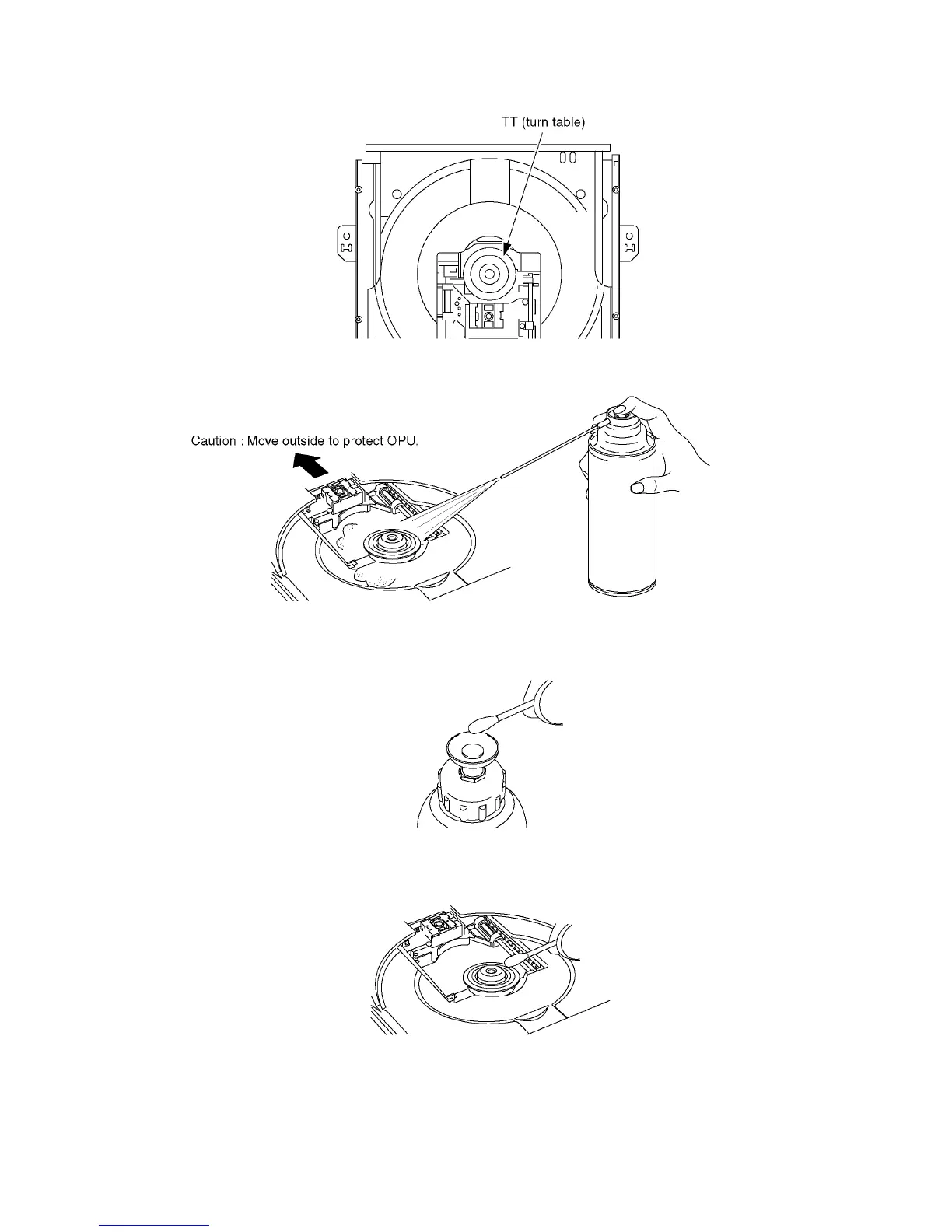 If a defective phenomenon is “NO READ”, please try to clean TT (turn table) in the drive in according to the following procedure.