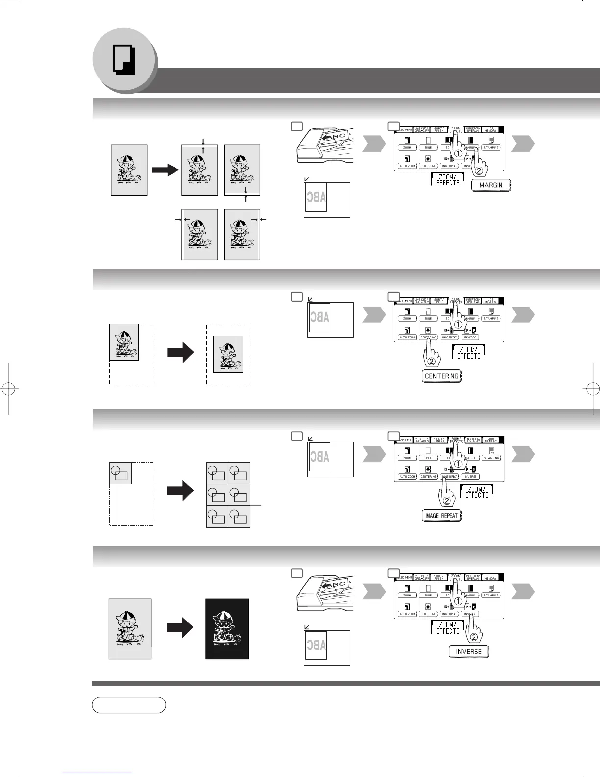 ● In Centering and Image Repeat mode, make copies with i-ADF/ADF open.