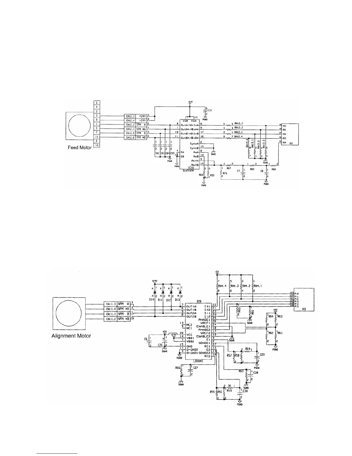 rotates the coil in each phase. The Motor drive current is controlled by the duty cycle from P24 of IC2.