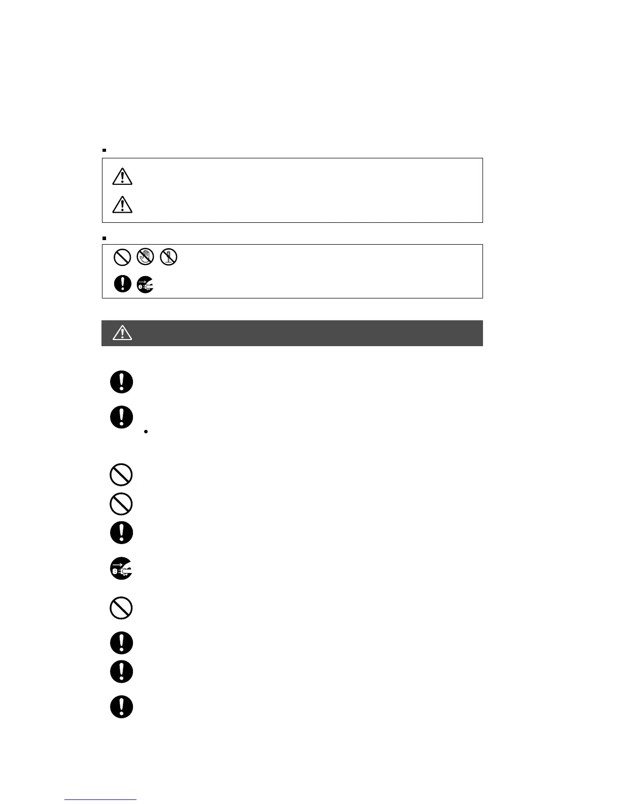 abnormal smell, or if water is spilt onto the machine. These conditions can cause fire.
