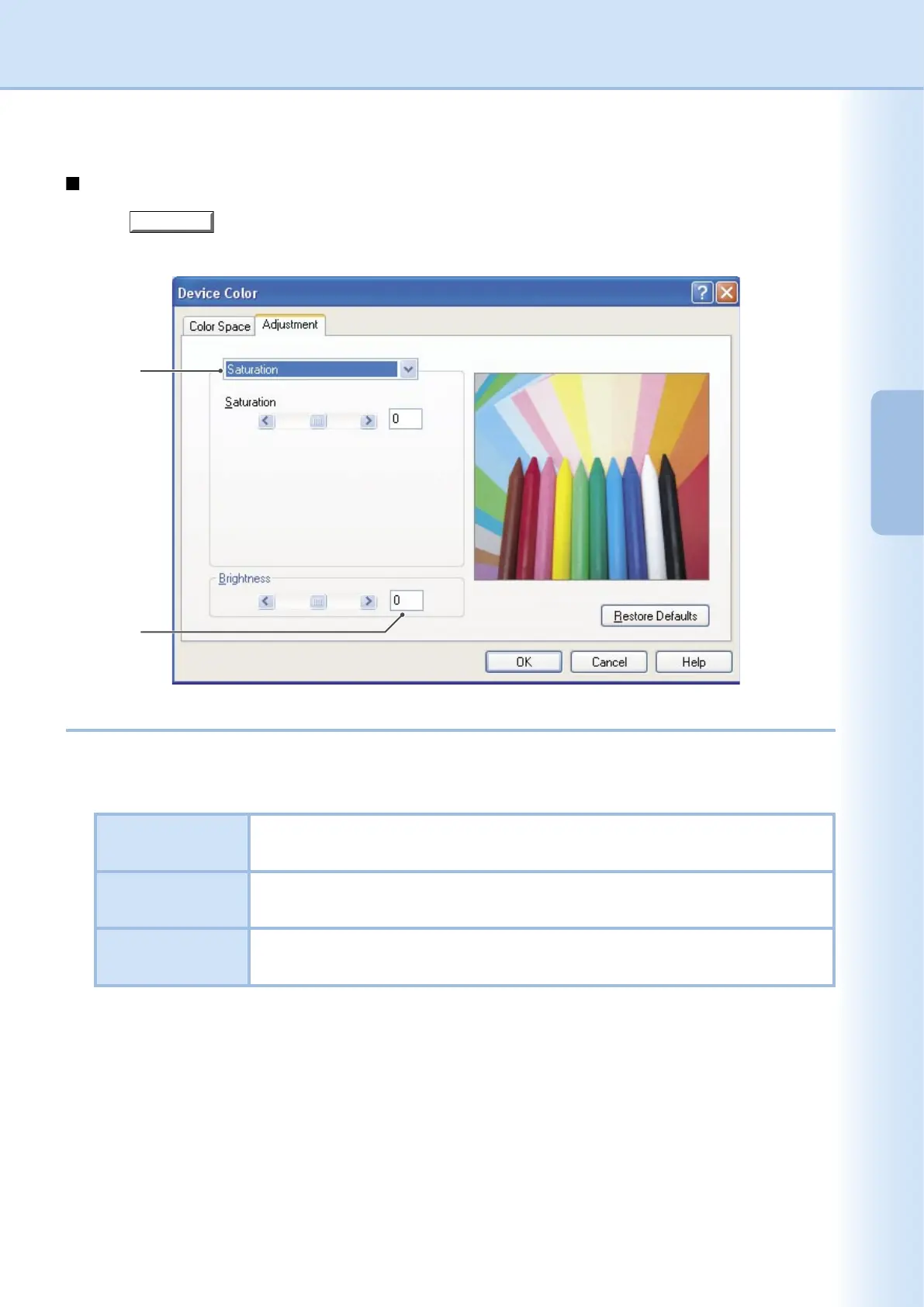 1. Adjustment (Available only when Device Color is selected)