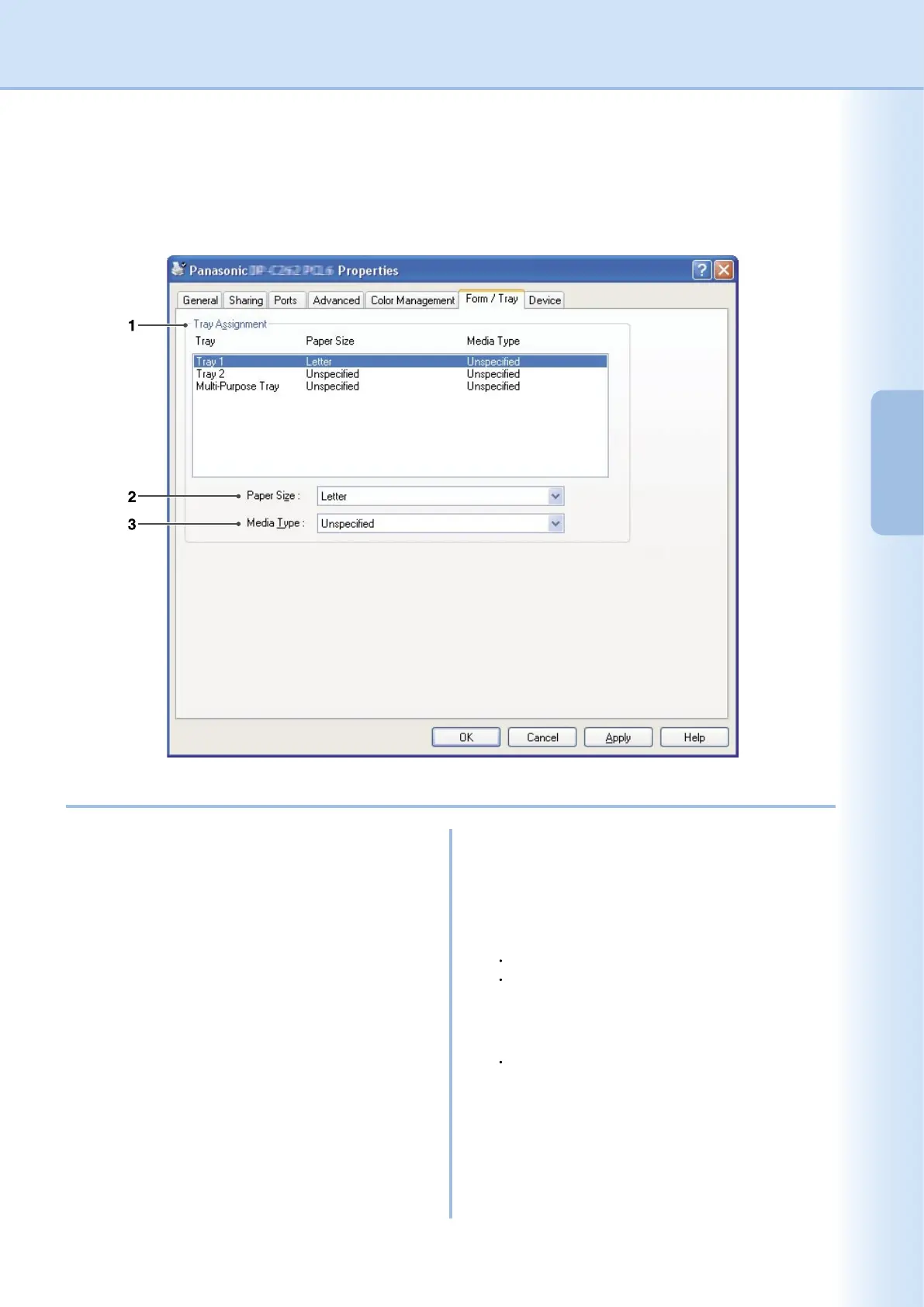 Form/Tray Tab (Except for Windows 98/Windows Me)