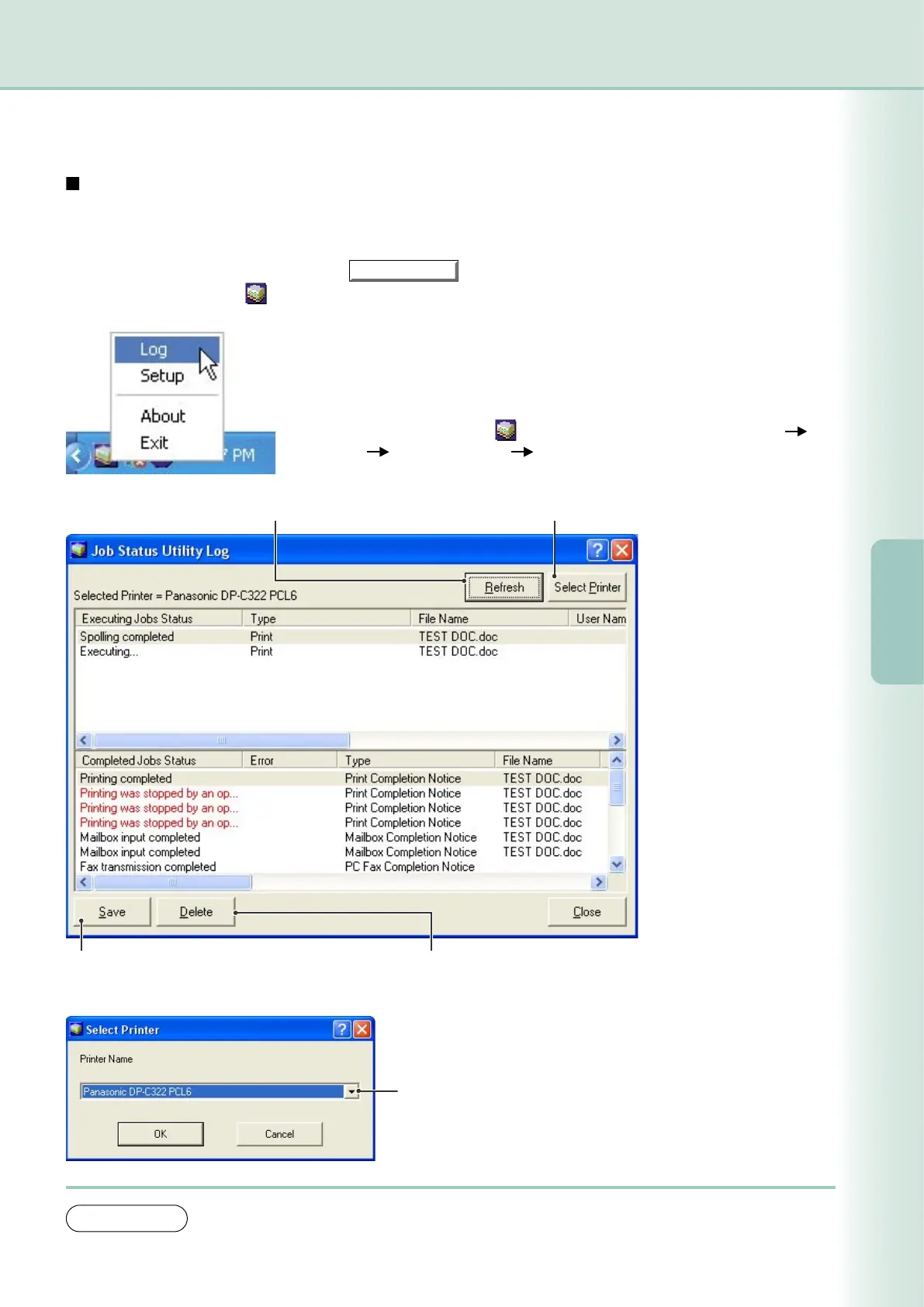 Panasonic Job Status Utility Job Status Utility from the Start menu to
