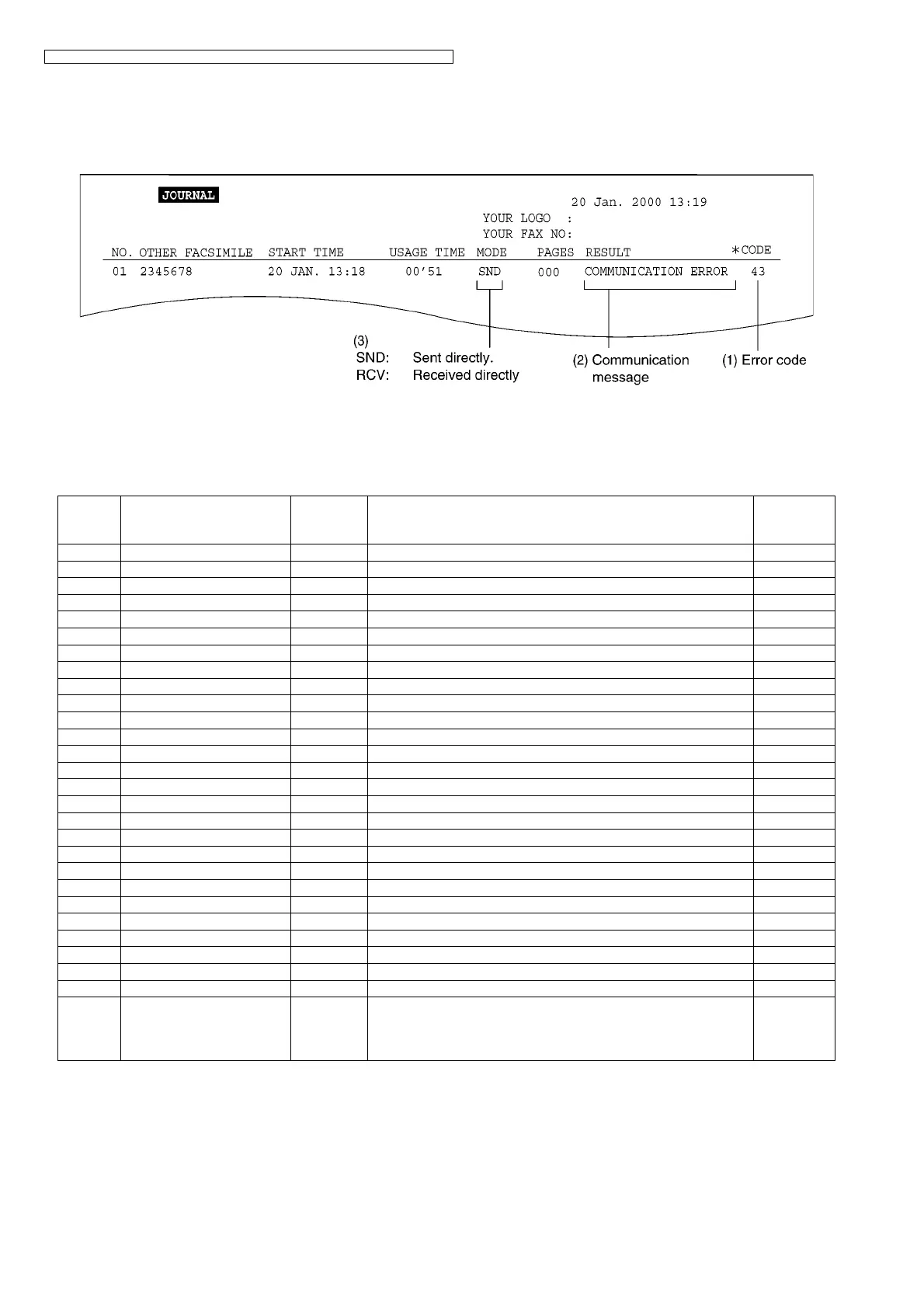 FD COMMUNICATION ERROR SND & RCV Modem error. For the DCN, DCN, etc. abbreviations, refer to NCU