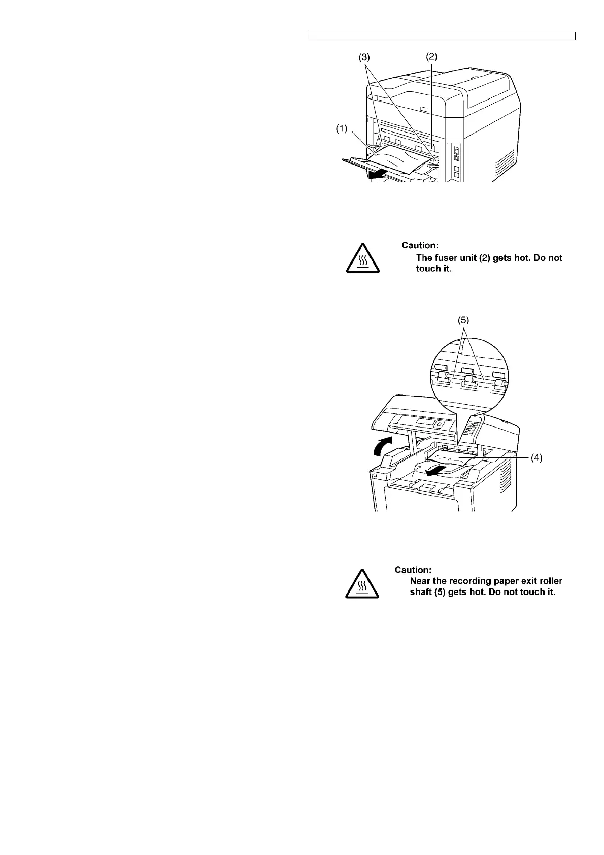 3. Remove the jammed paper (1) carefully by pulling it toward you.