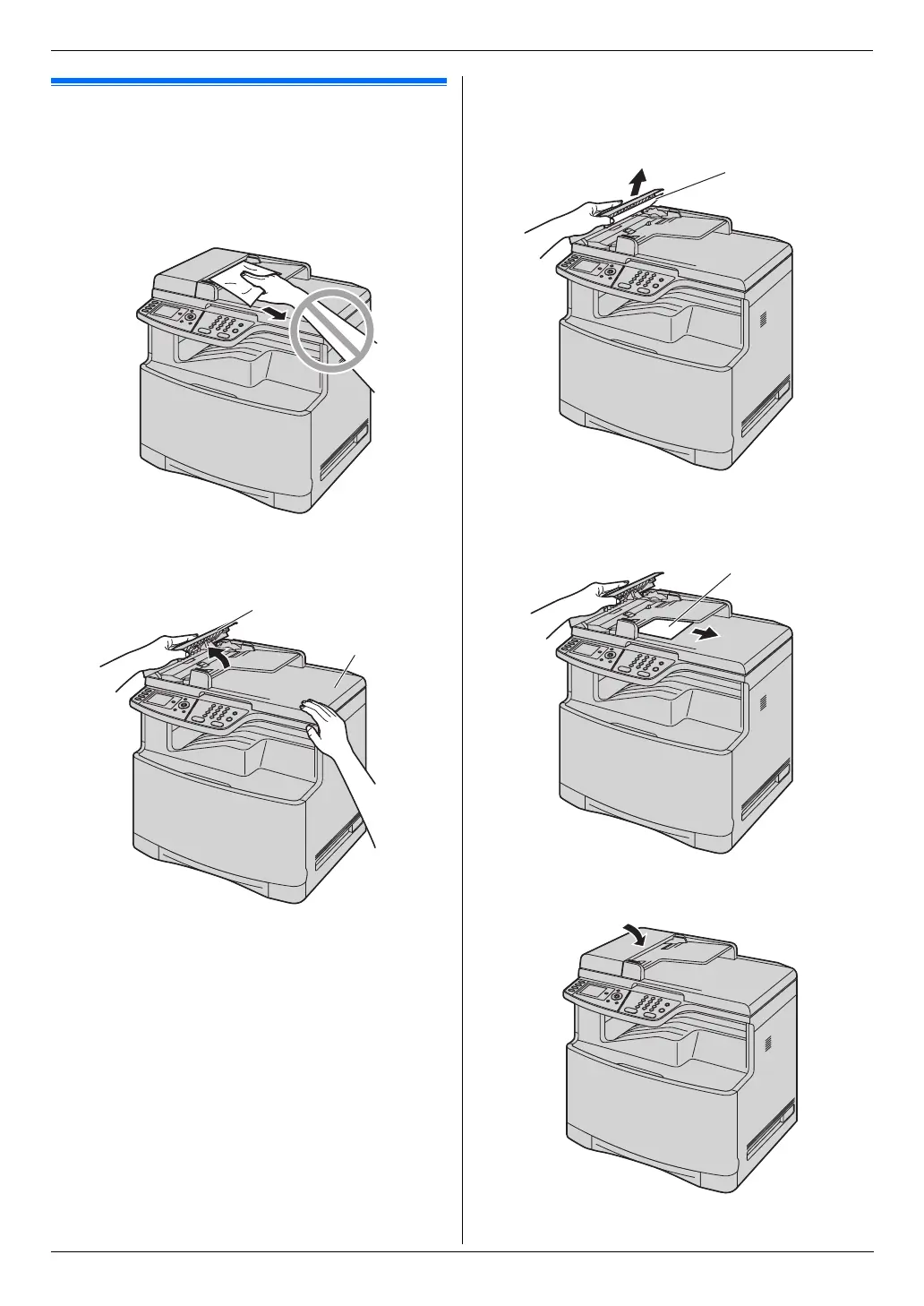 L Do not pull out the jammed document forcibly