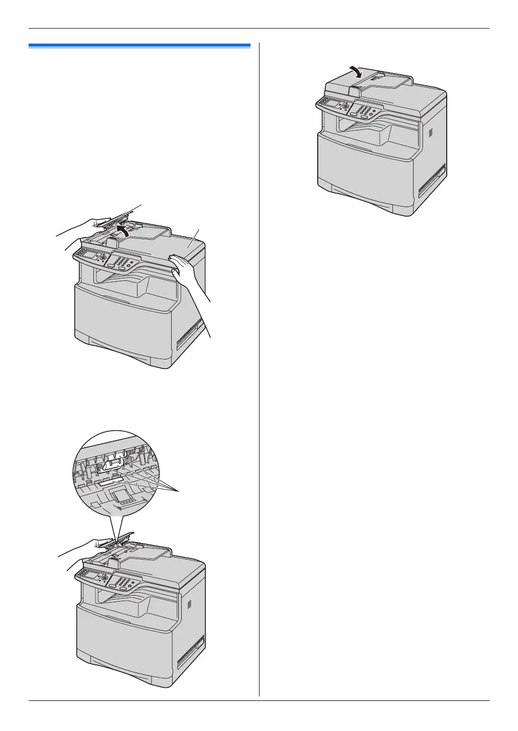 2 Open the ADF cover (1) while holding the