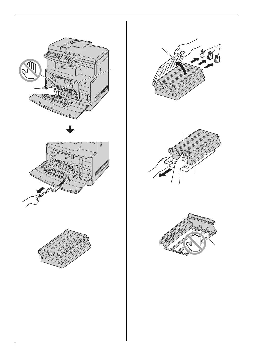 L Do not touch or scratch the green drum surfaces