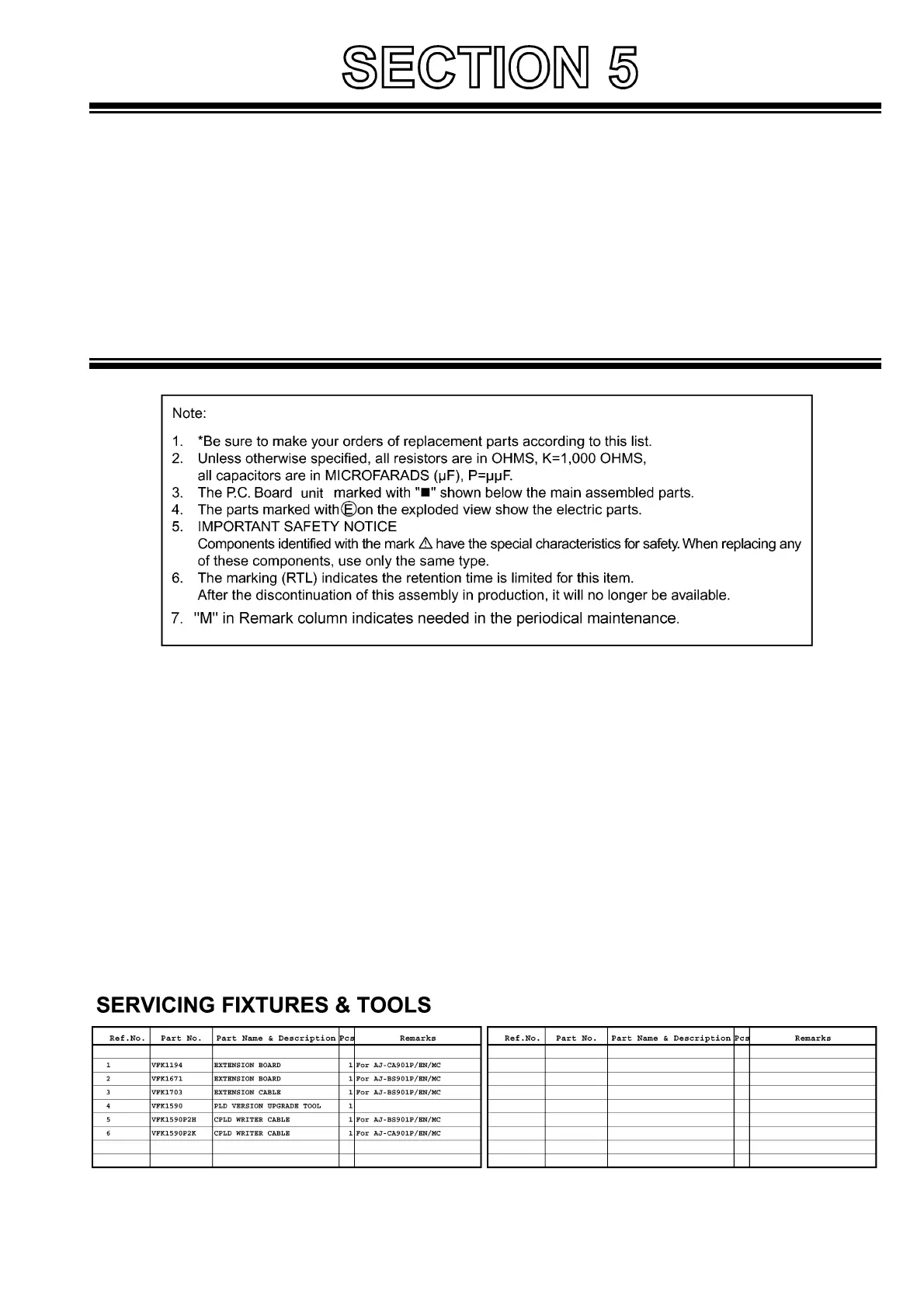 ELECTRICAL REPLACEMNT PARTS LIST (AJ-CA901P) ............................................................. EPL-1
