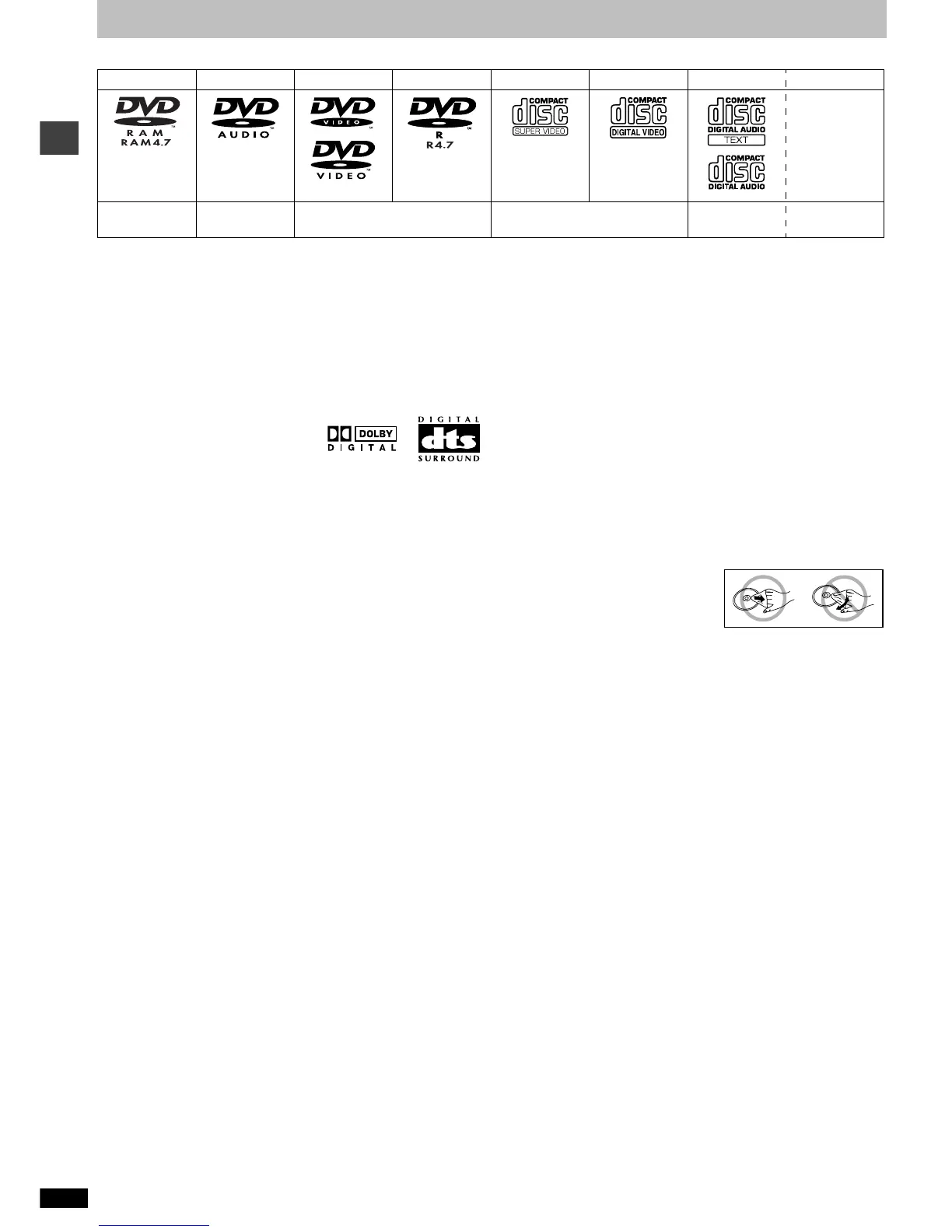 Use discs with the above logos and that conform to specifications. The unit cannot play other discs correctly. Do not use irregularly shaped discs (e.g.