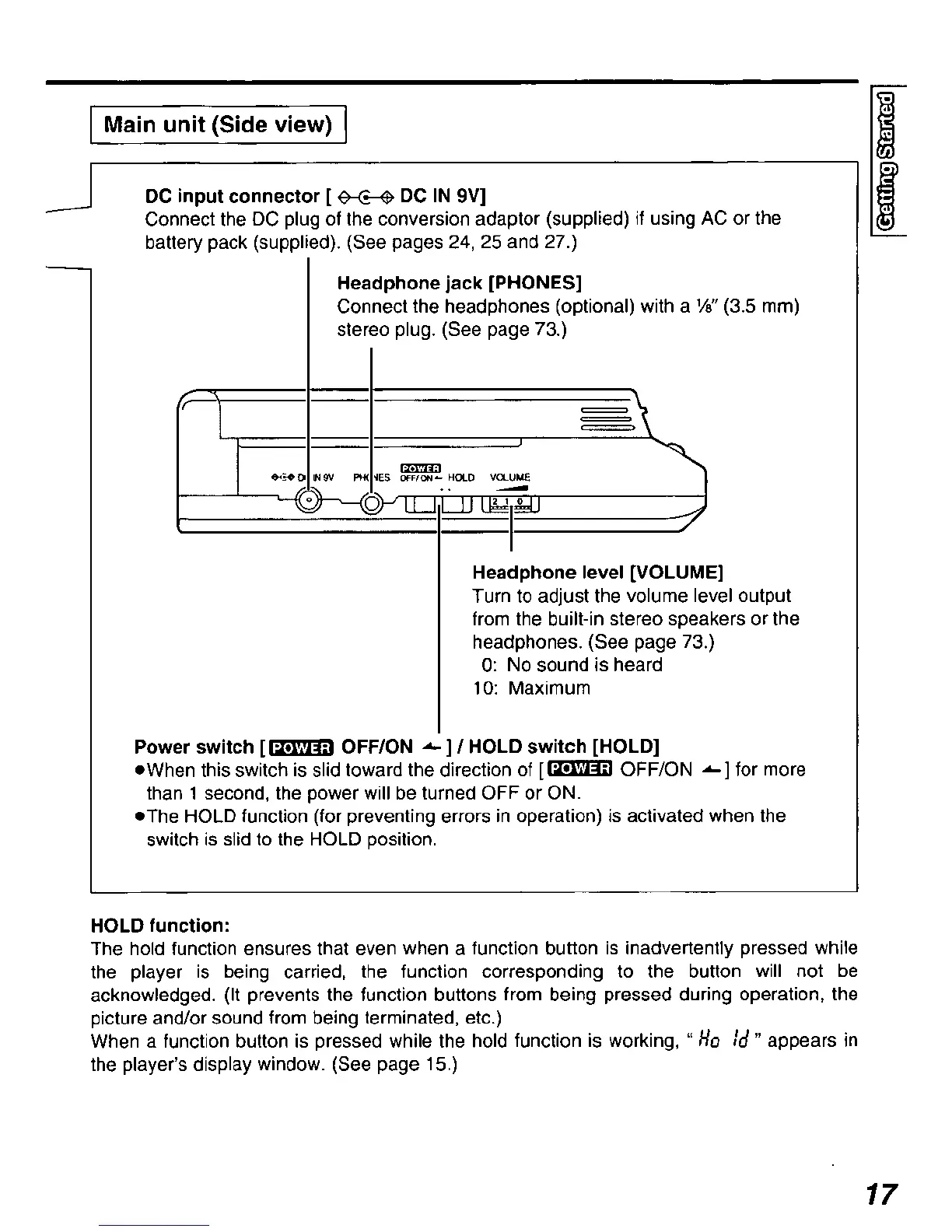 Panasonic DVD-L10 - Main Unit Controls (Side View)