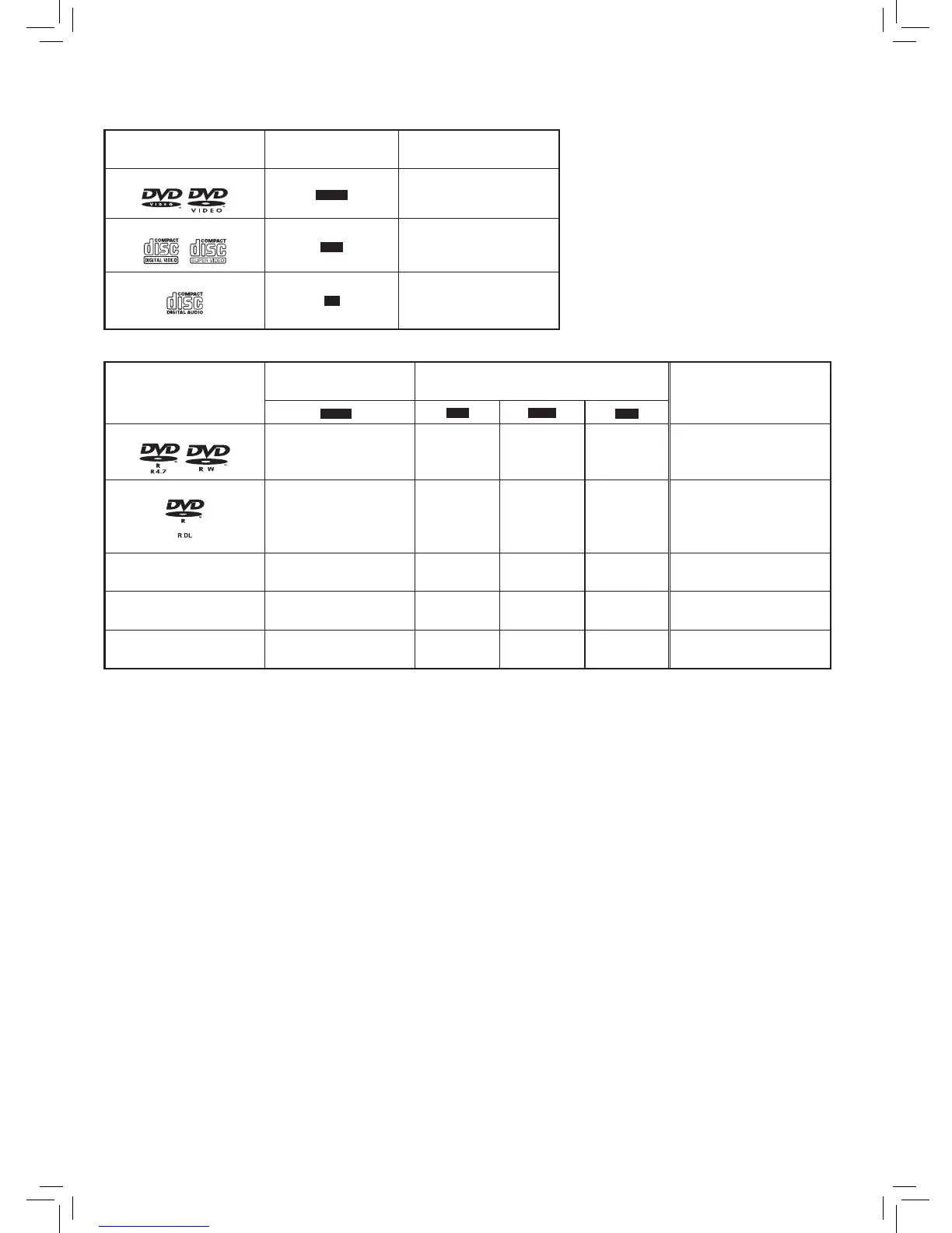 ● It may not be possible to play the above discs in all cases due to the type of discs, the condition of the recording, the recording