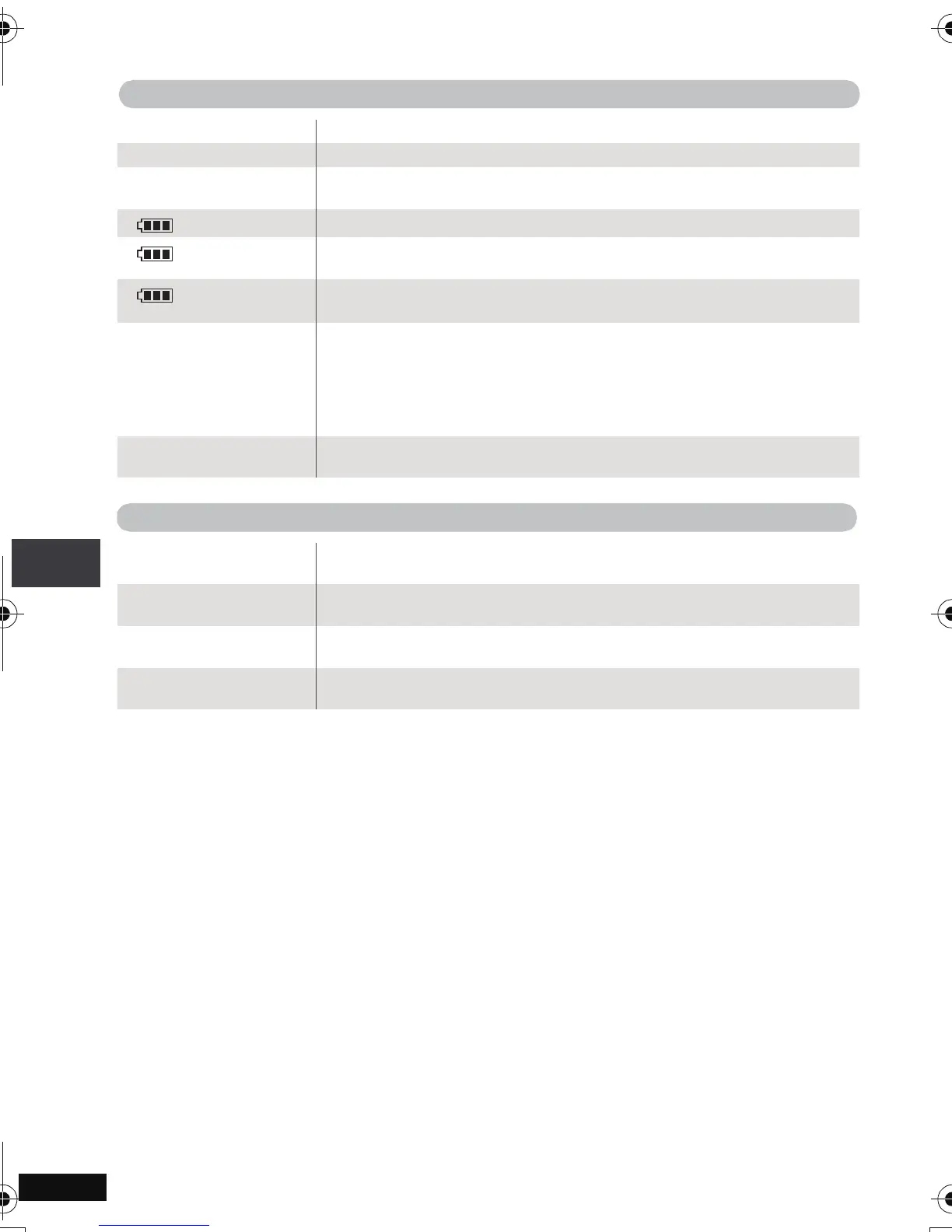 ≥ Battery pack charge is low. The unit will turn off automatically after a