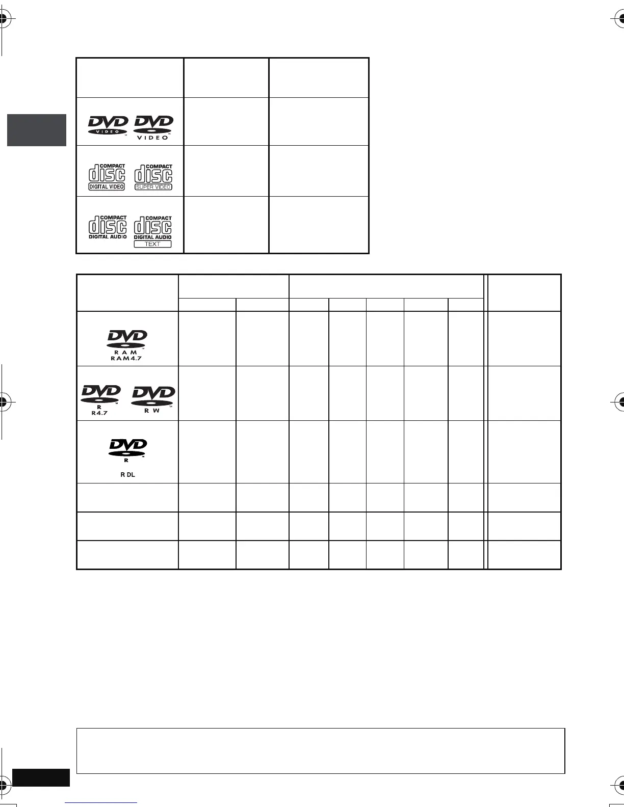 It may not be possible to play the above discs in all cases due to the type of discs, the condition of the