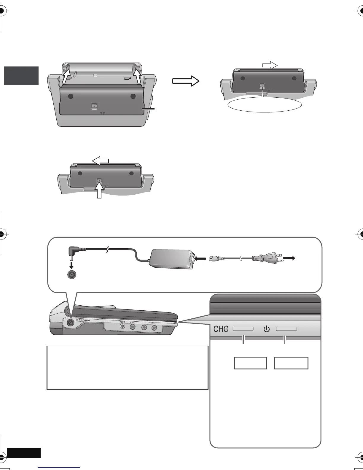 1 Attaching the battery (When the unit is off)