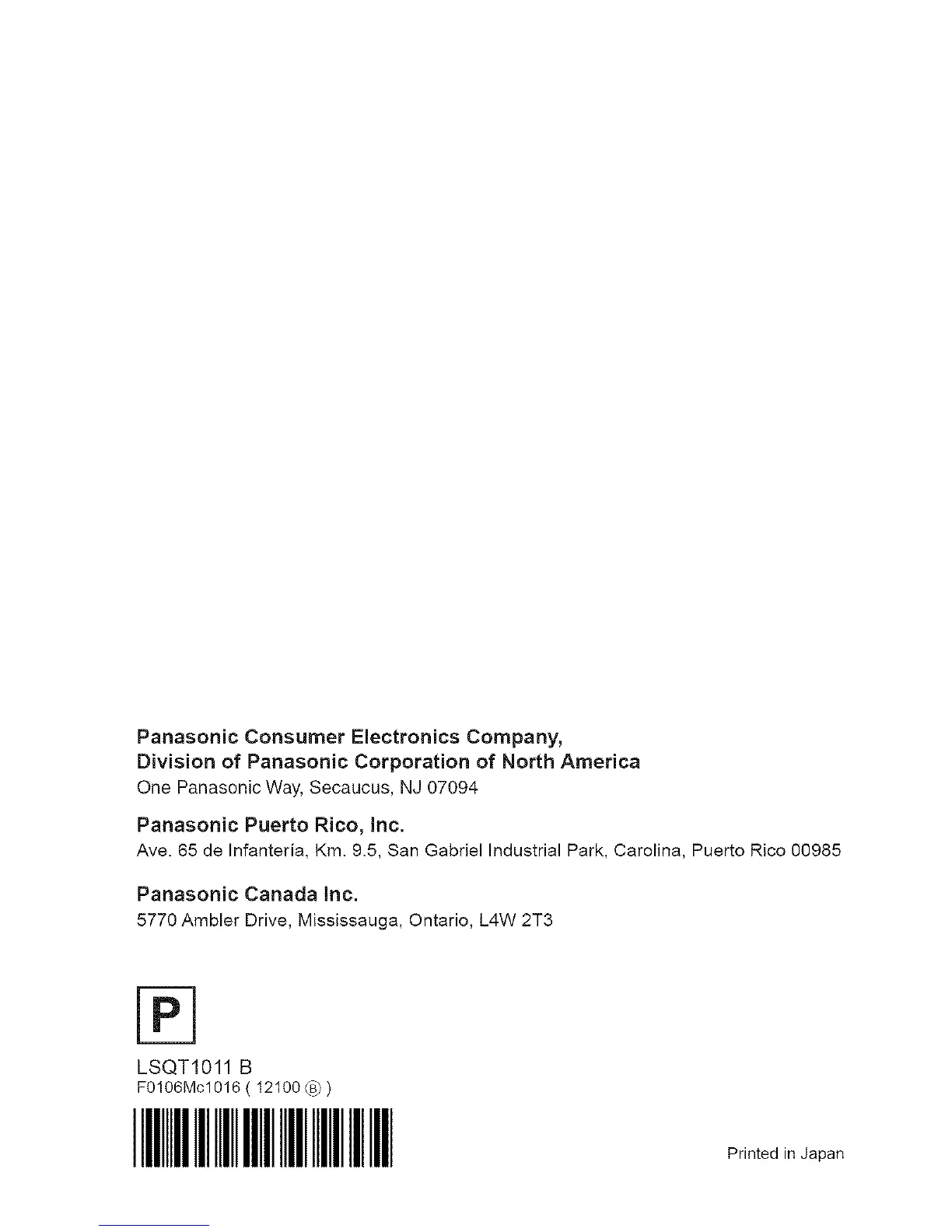 One PanasonicWay,Secaucus, NJ 07094