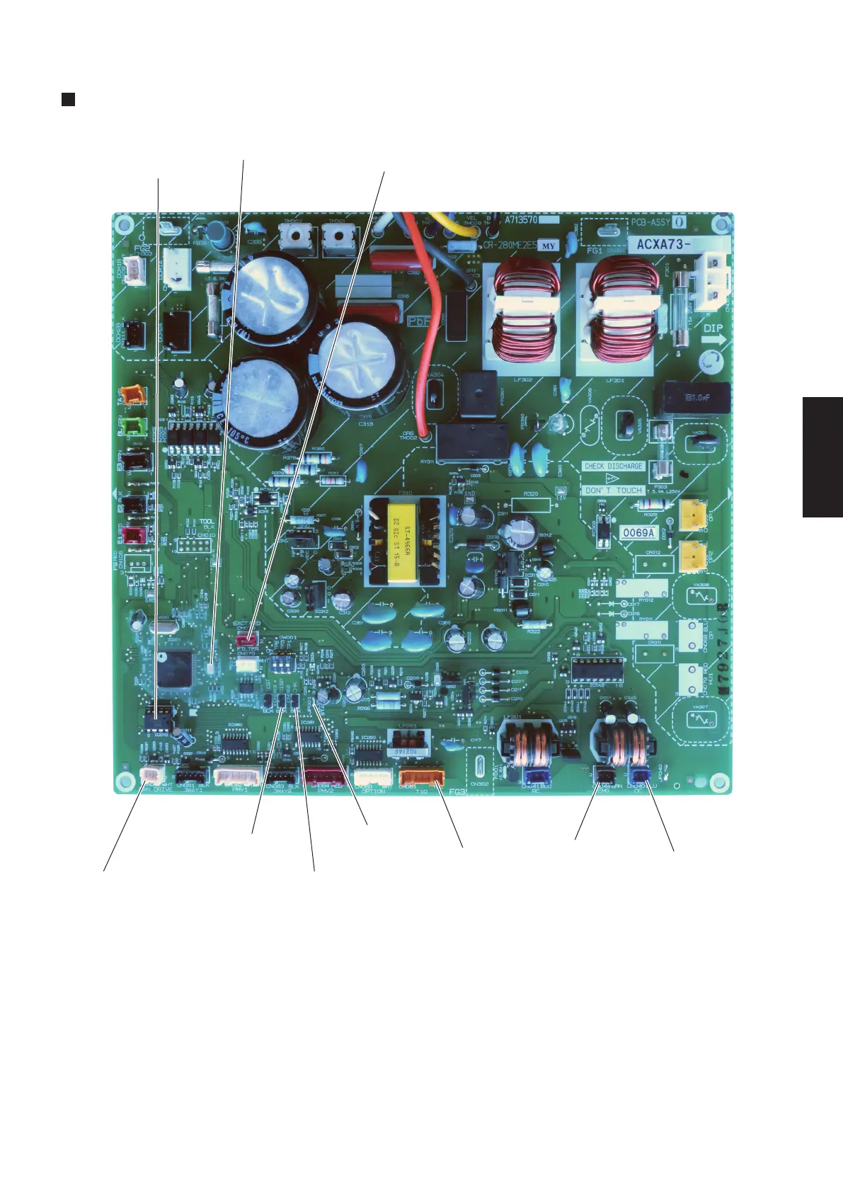 6P plug (BLK) 1-4Pin / Test Pin. Short-circuiting this Pin allows the indoor FM (H fan speed),