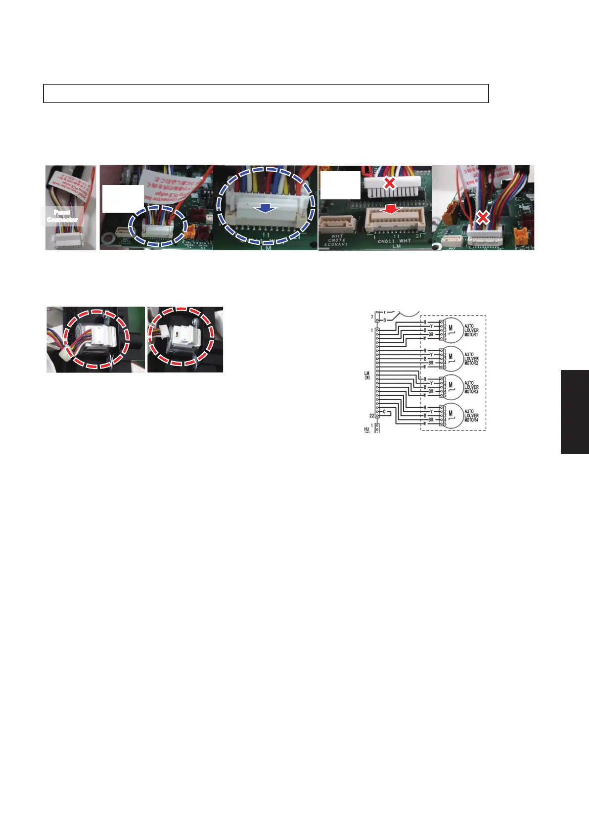 3. Air swing motor (inside the panel) wiring connector loosen or wire broken