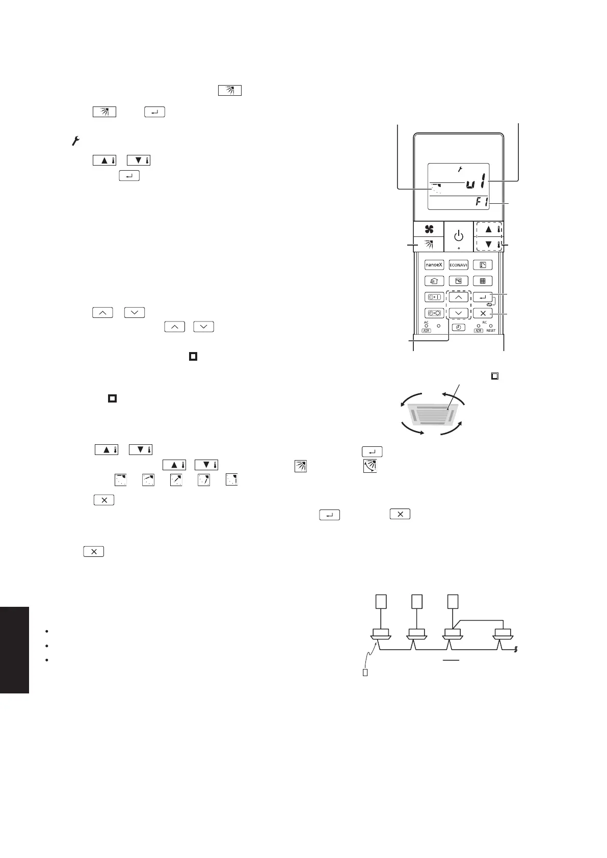 ↔ U8 ↔ AL (All indoor units that are connected to the remote