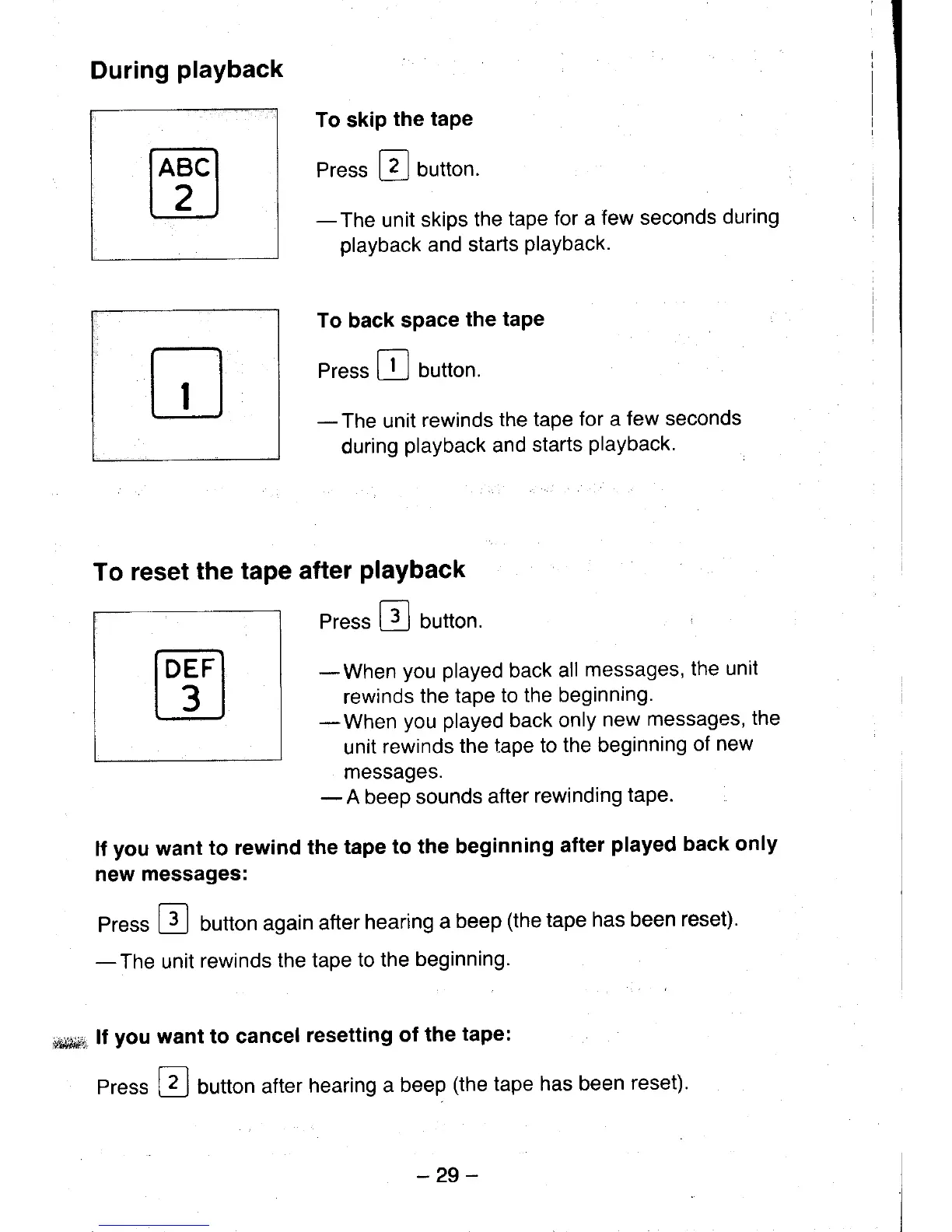 Panasonic Easa-Phone KX-T5100 - Remote Playback Control Functions; Skipping Tape Segments During Playback; Backspacing Tape Segments During Playback; Resetting Tape After Remote Playback
