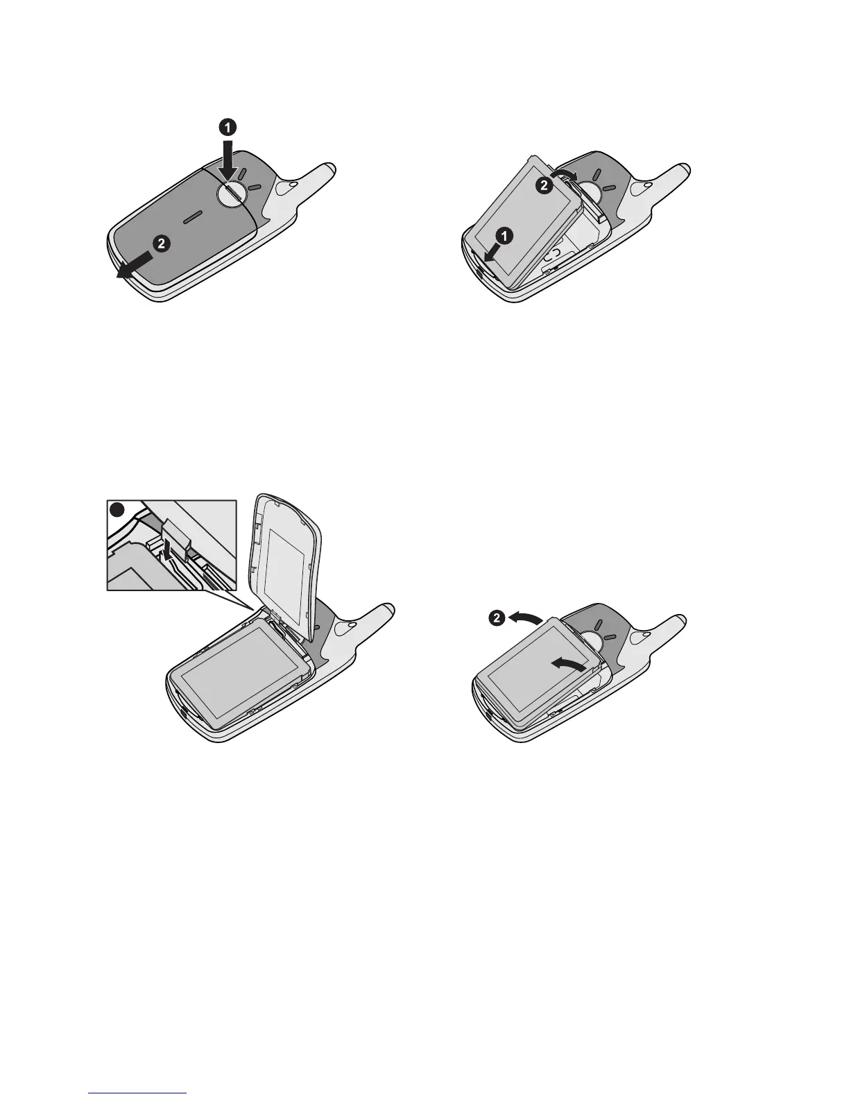 Push and hold the release latch ➊ towards the top of the phone using