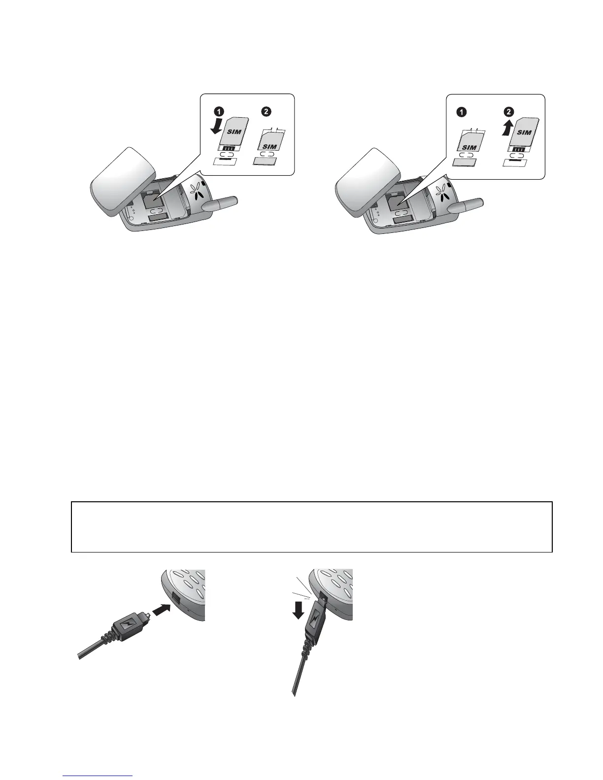 NOTE: DO NOT force the connector as this may damage the phone and/or the charger.