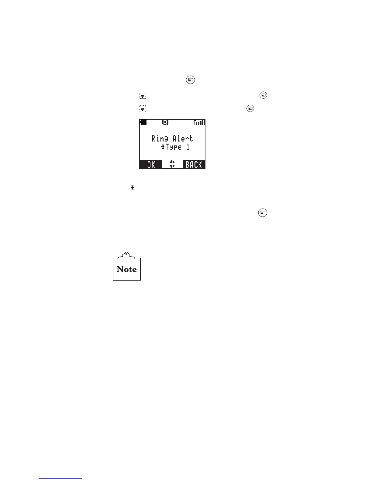 • The current ring alert setting is displayed with an asterisk