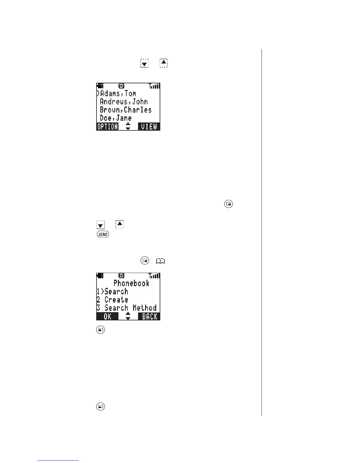 From standby, press ( ) to enter the Phonebook.