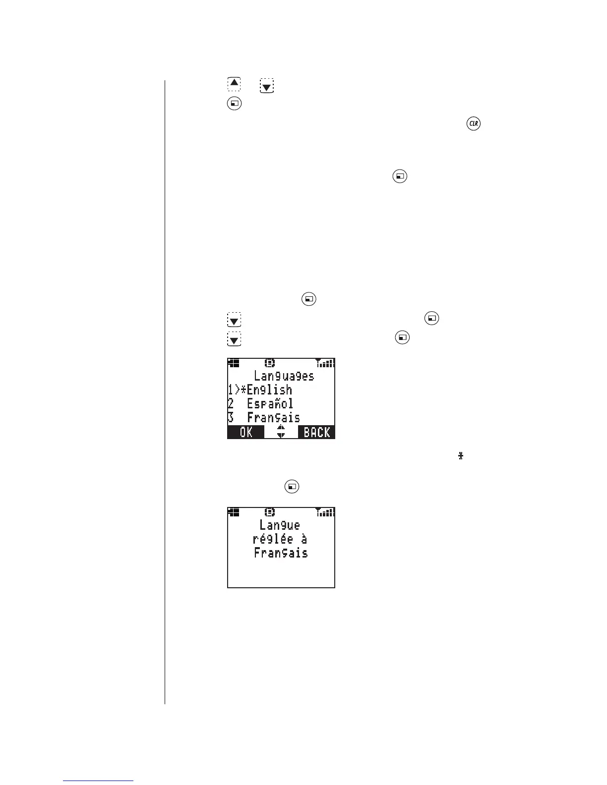 • The display confirms the new language setting.